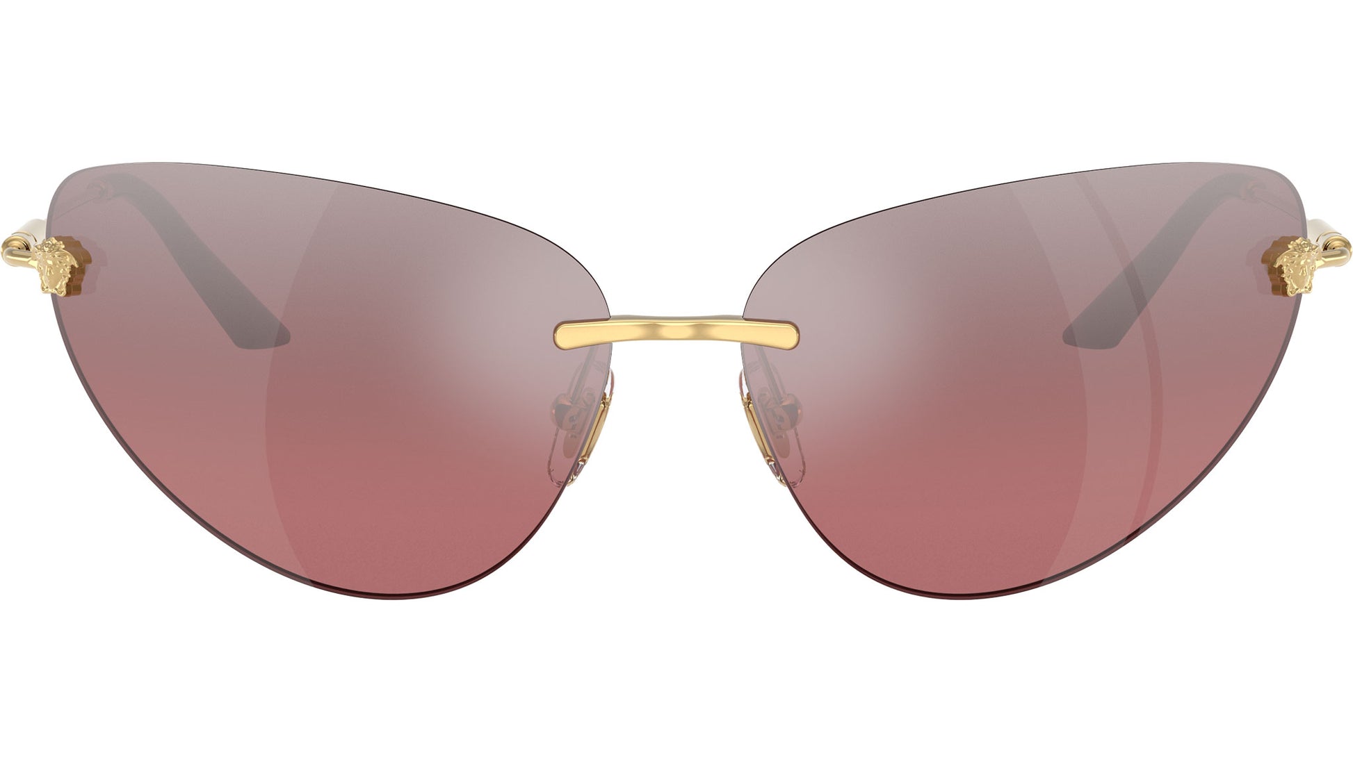 Versace sunglasses for women model VE2281 10027E featuring gold metal frame and pink mirror silver gradient base 8 decentered bio poliammide lenses. Adjustable nosepads. Frame line: Daily Heritage. Brand code: 0VE2281. Color code: 10027E. Authorised Versace Eyewear Online Reseller. Your glasses will come including the original case and accessories and will be covered by 12 month global warranty.