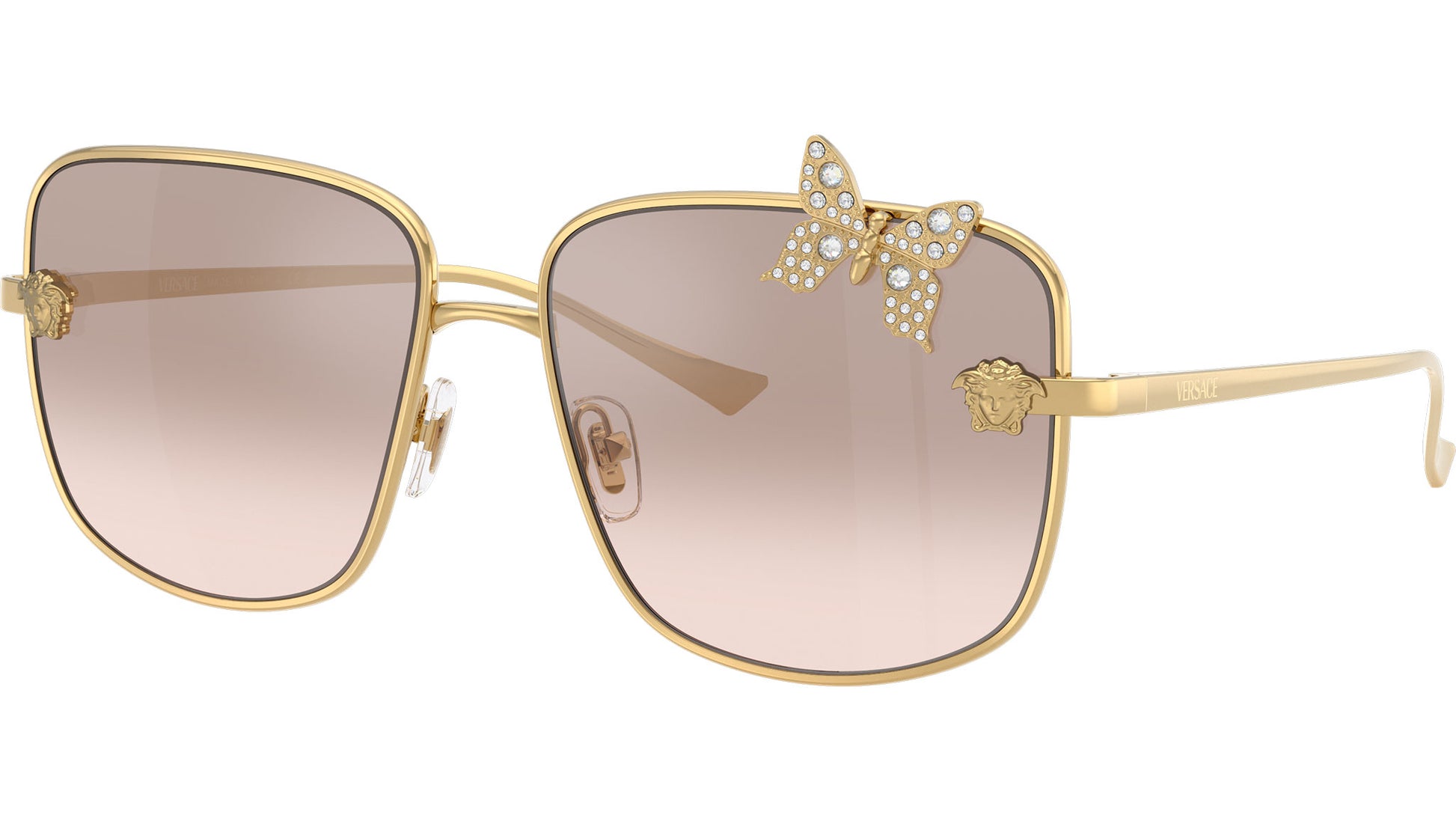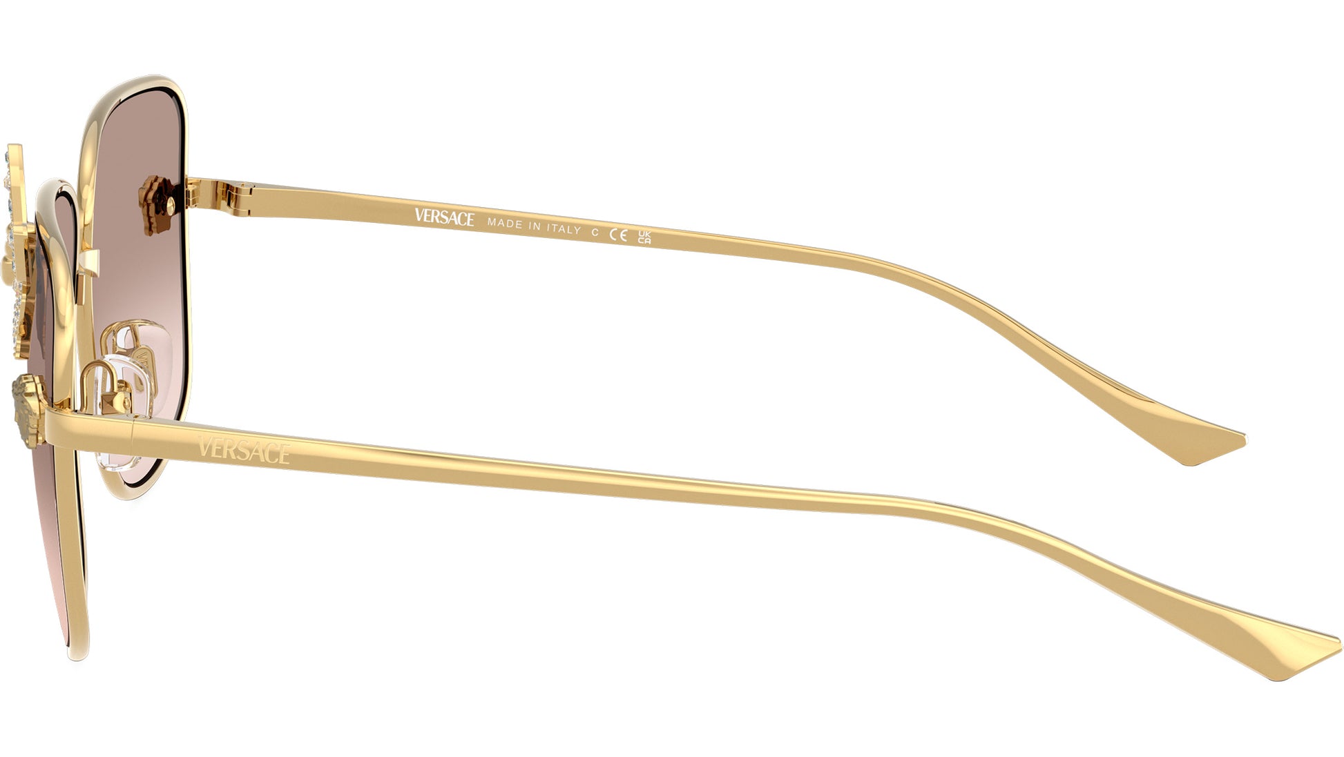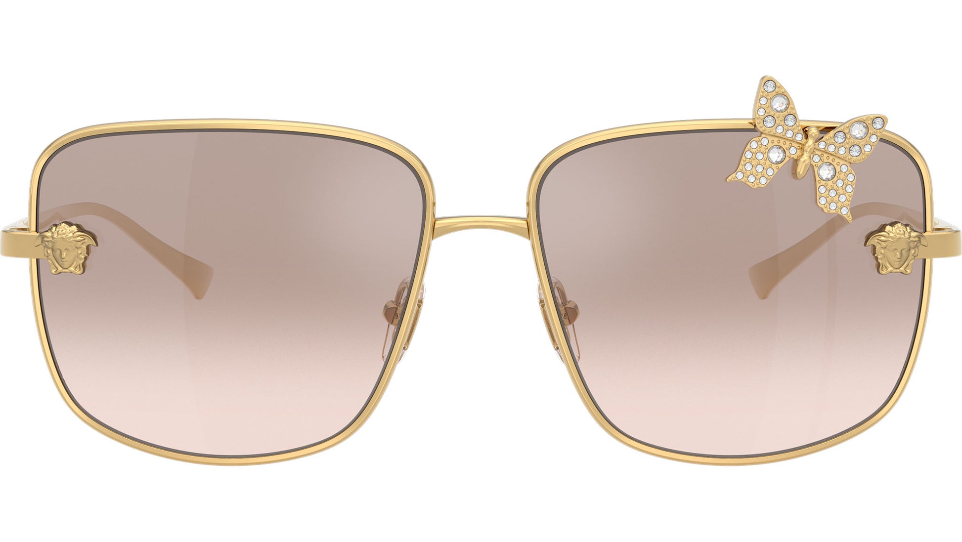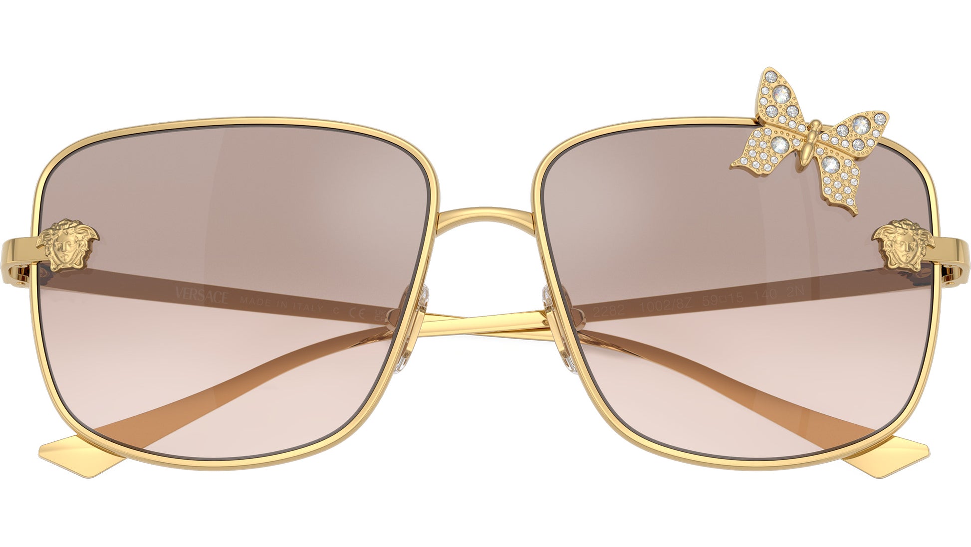 Gafas de sol Versace para mujer, modelo VE2282 10028Z, con montura de metal dorado y lentes de poliamida bio, base plateada degradada, efecto espejo marrón claro. Plaquetas ajustables. Línea de montura: Fashion ID. Código de marca: 0VE2282. Código de color: 10028Z. Distribuidor autorizado en línea de gafas Versace. Sus gafas incluyen el estuche y los accesorios originales, y cuentan con una garantía global de 12 meses.