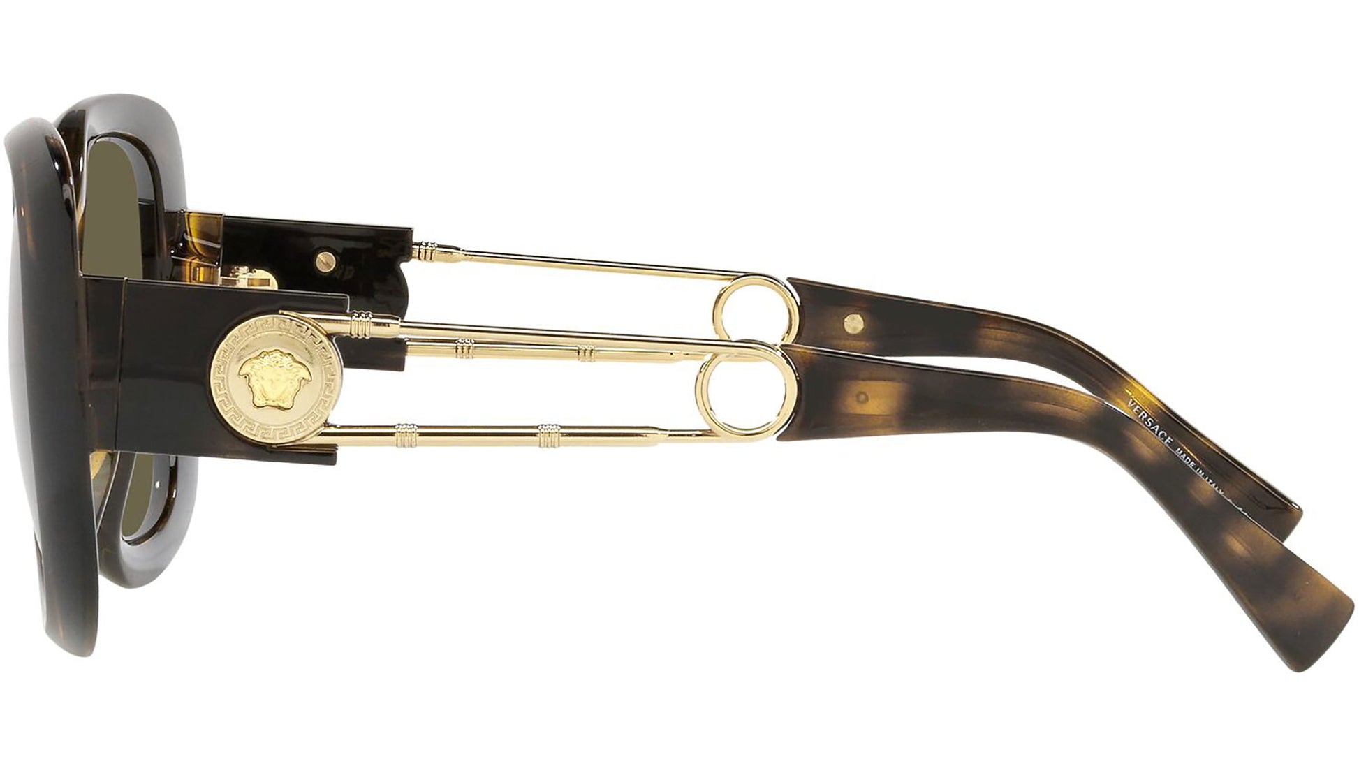 Colección de gafas de sol Versace modelo VE4411, variante de montura habana, código de color 108/3 con lentes marrones. Versace es una de las casas de moda de lujo más emblemáticas y famosas del mundo. Orgullosamente italiano, está diseñado para hombres y mujeres que desean un estilo moderno y glamuroso que combine sofisticación y atractivo sexual. La Maison es el epítome del glamour sensual, sexy y empoderador: un verdadero símbolo del lujo italiano.