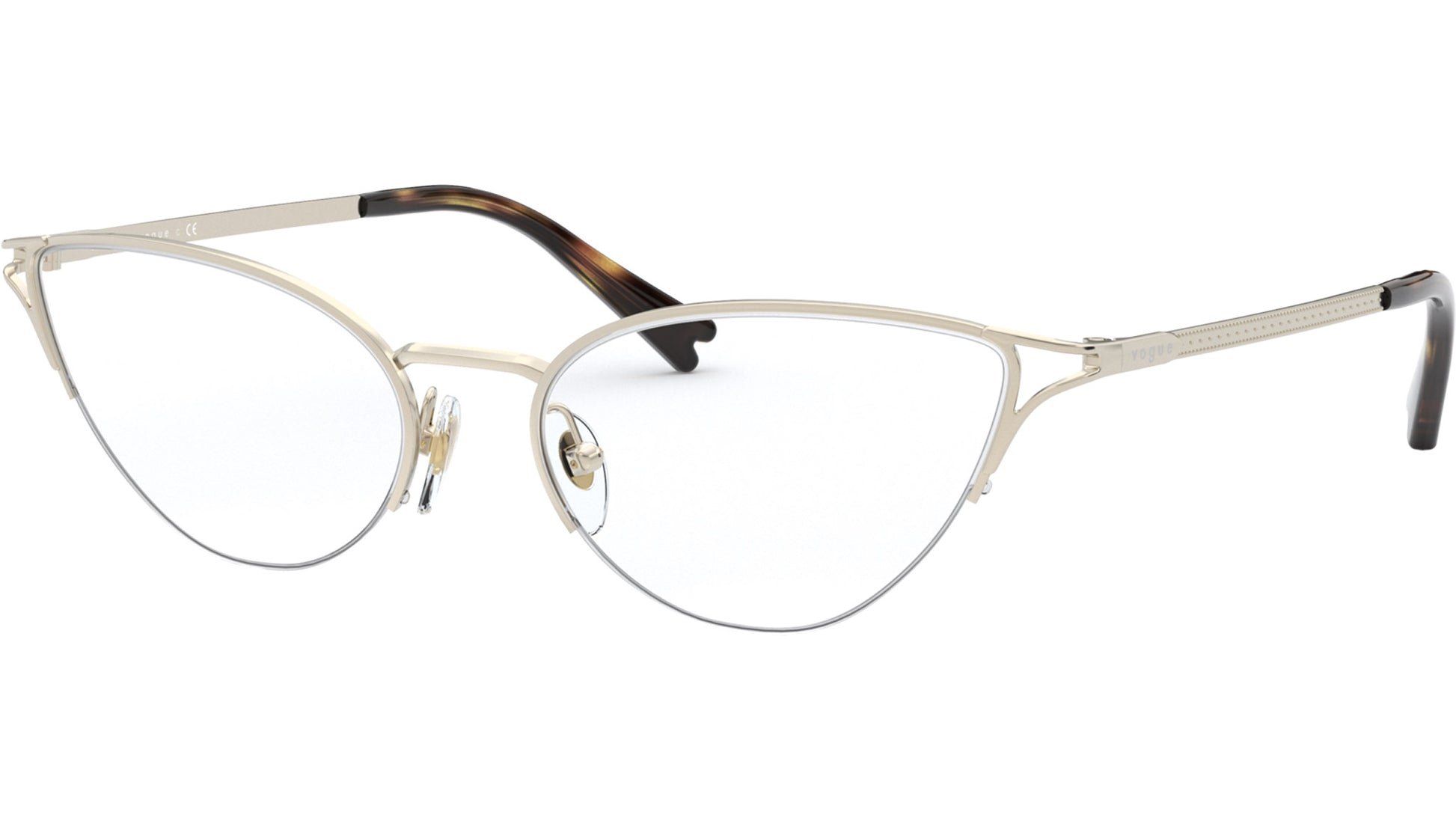 Gafas Vogue para mujer, modelo VO4168 848, con montura metálica en dorado pálido y lentes de muestra de base 4. Código de marca: 0VO4168. Código de color: 848. Distribuidor online autorizado de Vogue Eyewear. Sus gafas incluyen el estuche y los accesorios originales, y cuentan con una garantía global de 12 meses.
