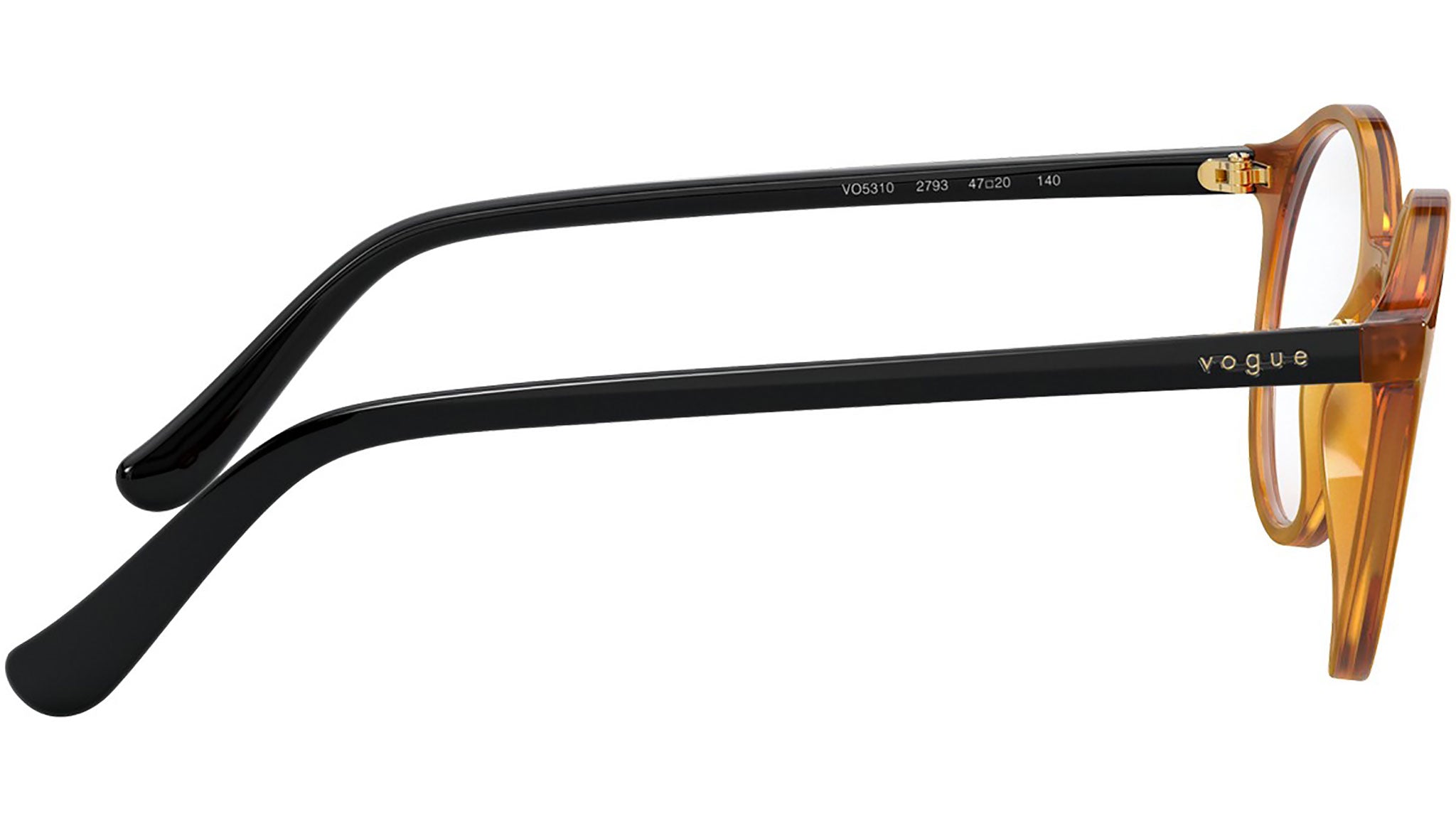 Gafas Vogue para mujer, modelo VO5310 2793, con montura de acetato color amarillo habana y lentes de muestra de base 4. Código de marca: 0VO5310. Código de color: 2793. Distribuidor online autorizado de Vogue Eyewear. Sus gafas incluyen el estuche y los accesorios originales, y cuentan con una garantía global de 12 meses.