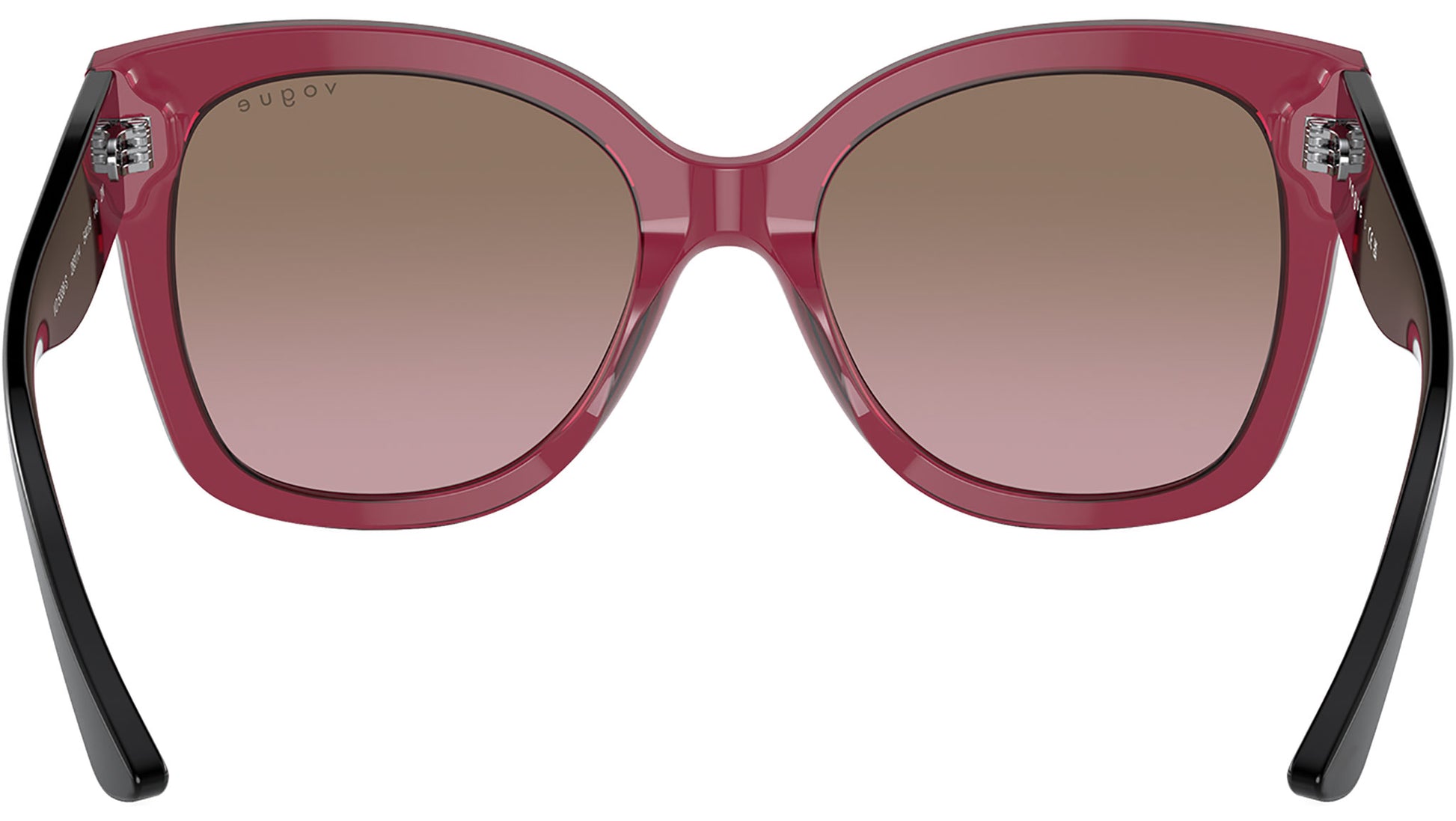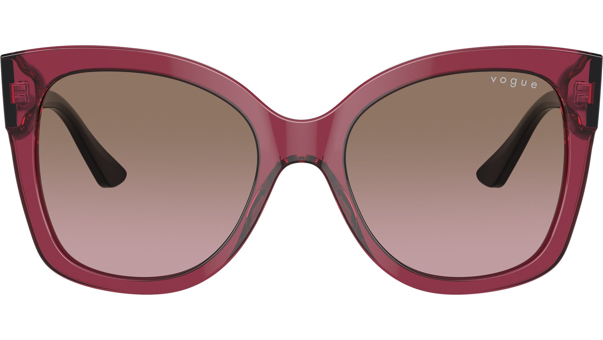 Gafas de sol Vogue para mujer, modelo VO5338S 283114, con montura de acetato color cereza transparente y lentes CR-39 con base marrón degradado violeta. Puente alto. Línea de montura: In Vogue. Código de marca: 0VO5338S. Código de color: 283114. Distribuidor autorizado en línea de Vogue Eyewear. Sus gafas incluyen el estuche y los accesorios originales, y cuentan con una garantía global de 12 meses.