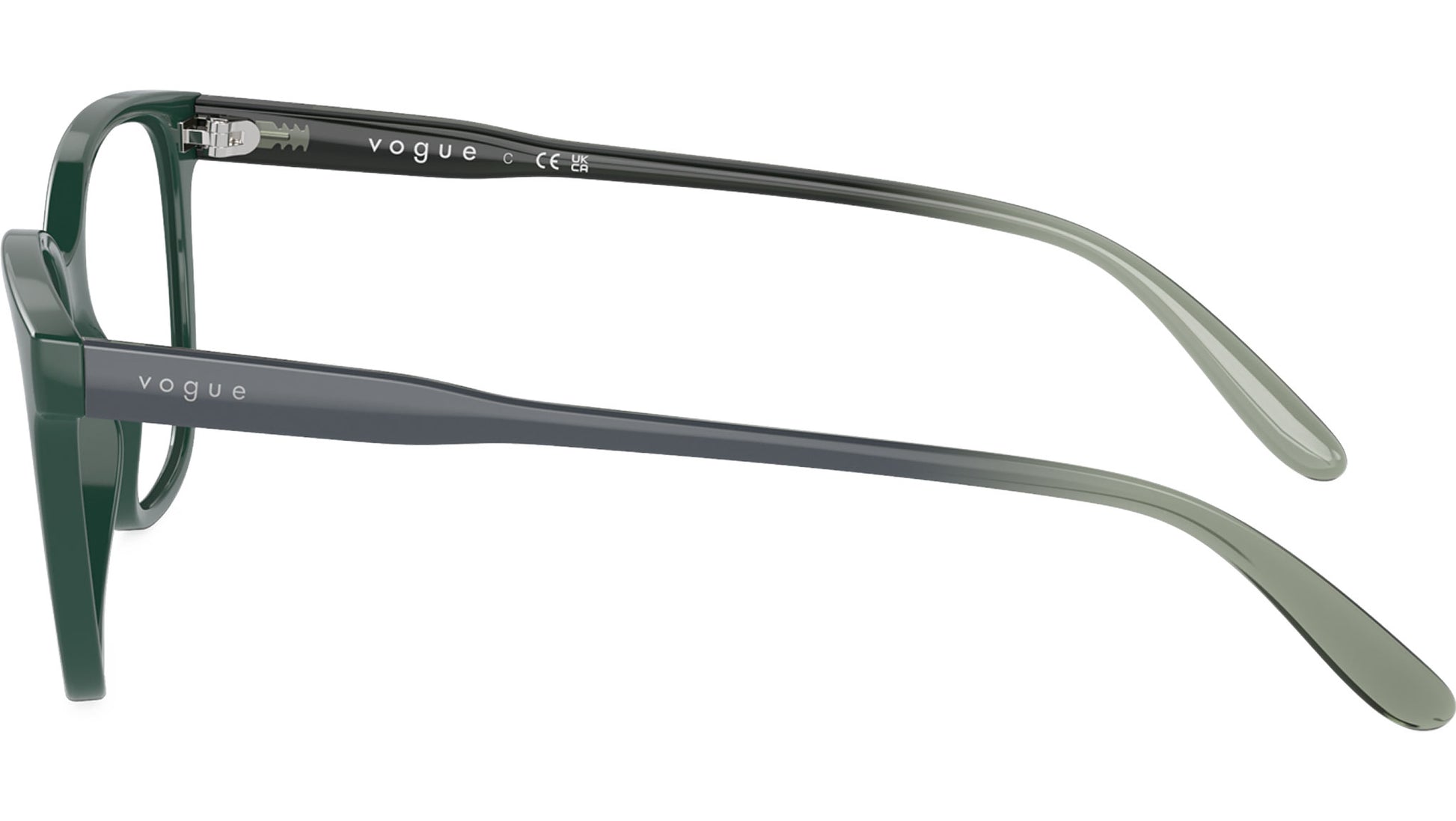 Gafas Vogue para mujer, modelo VO5518 3050, con montura de nailon verde oscuro y lentes de muestra de base 4. Puente alto. Línea de montura: Evergreen. Código de marca: 0VO5518. Código de color: 3050. Distribuidor autorizado en línea de Vogue Eyewear. Sus gafas incluyen el estuche y los accesorios originales, y cuentan con una garantía global de 12 meses.