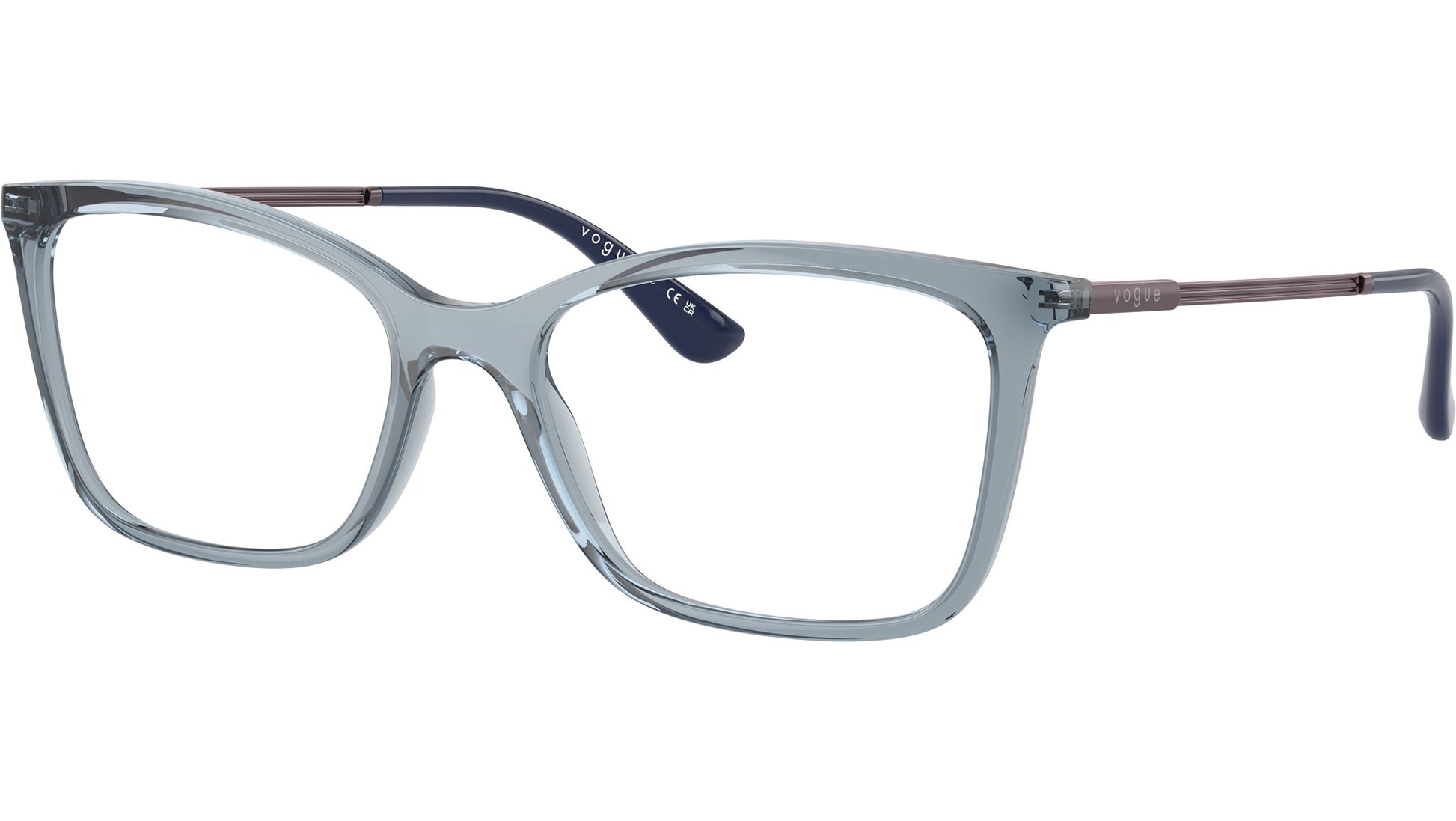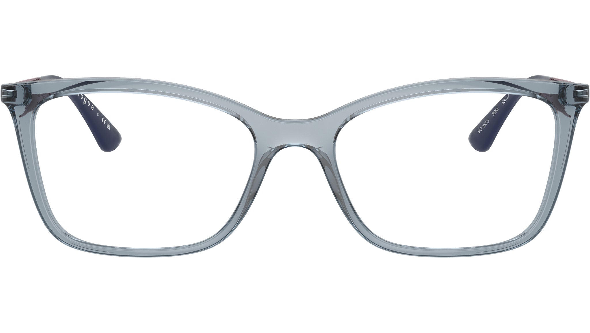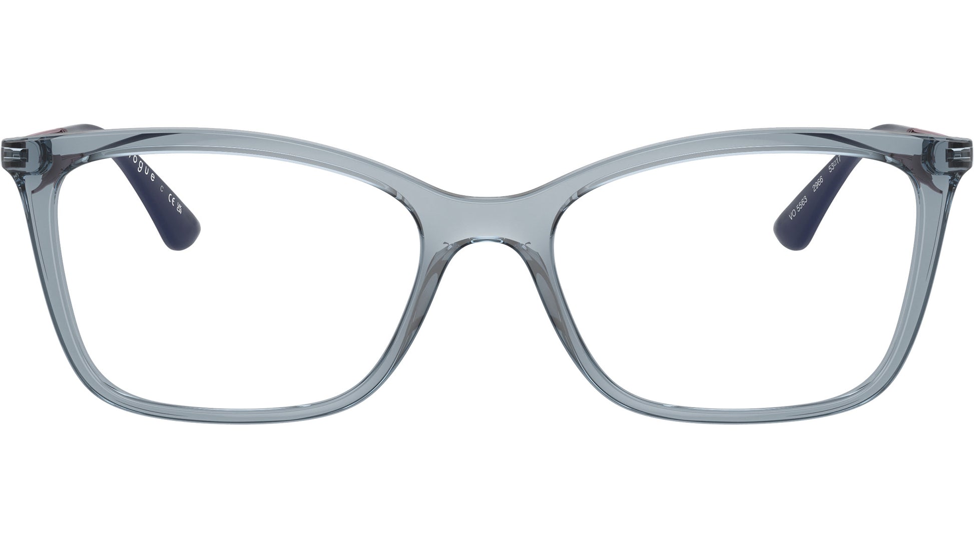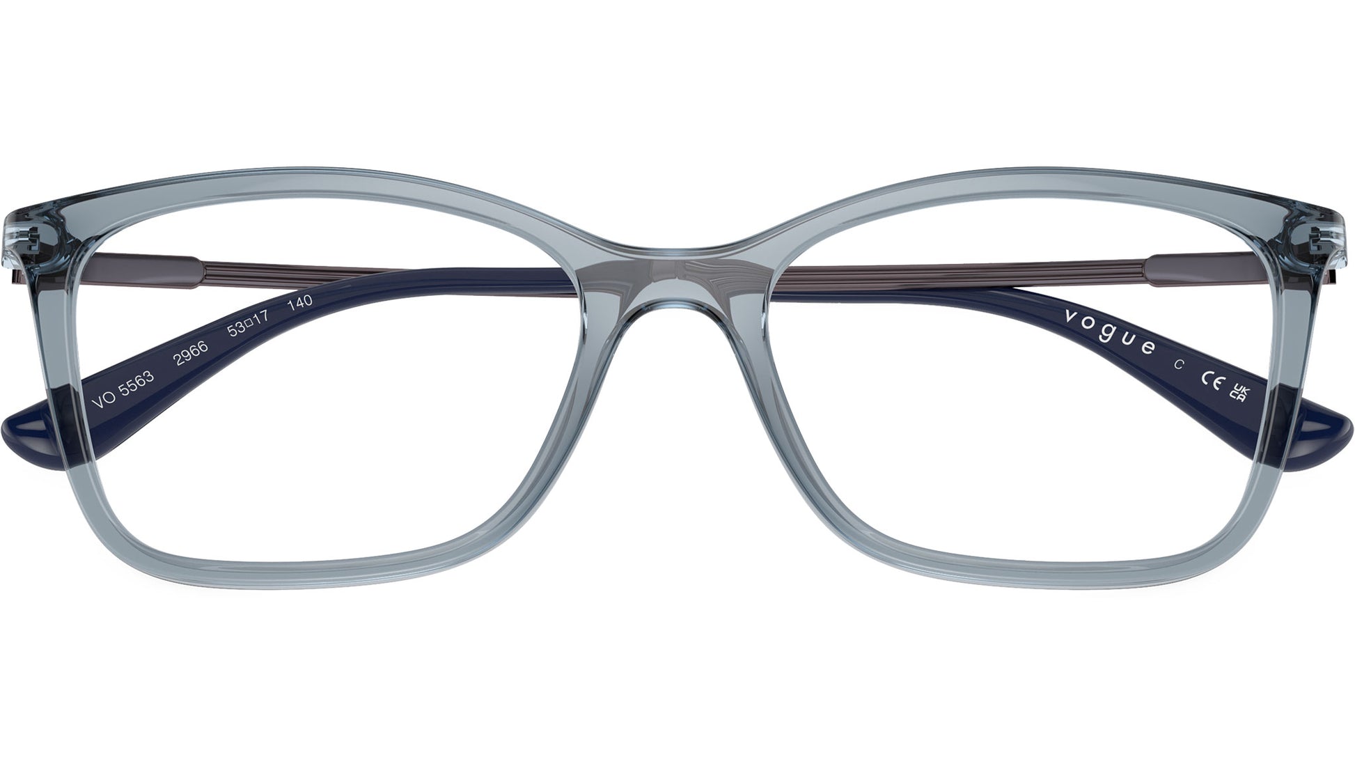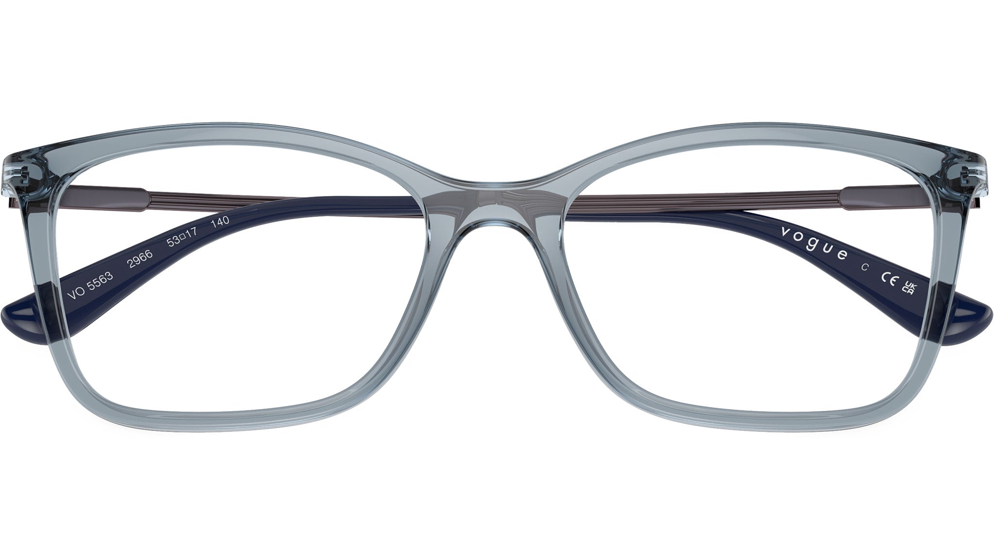 Gafas Vogue para mujer, modelo VO5563 2966, con montura de nailon azul transparente y lentes de muestra de base 4. Puente alto. Línea de montura: In Vogue. Código de marca: 0VO5563. Código de color: 2966. Distribuidor autorizado en línea de Vogue Eyewear. Sus gafas incluyen el estuche y los accesorios originales, y cuentan con una garantía global de 12 meses.