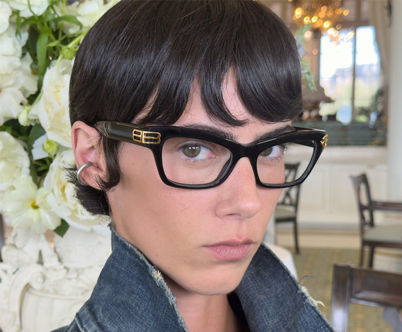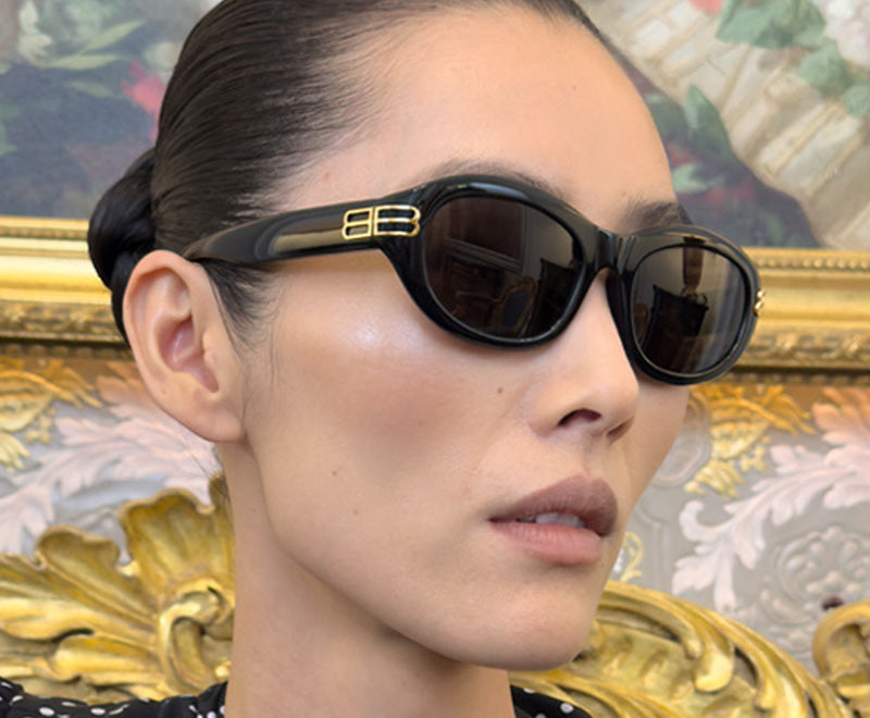 Conçues avec une monture angulaire et des encoches qui créent des points angulaires sur les bords des verres, les lunettes Balenciaga REVERSE XPANDER ont été conçues avec des matériaux biologiques et des ouvertures sous les verres ultra-enveloppants. / Conçue avec une monture angulaire et des encoches qui créent des points angulaires sur les bords des lentilles, la collection Balenciaga SPIKE présente des points angulaires sculpturaux. / HOURGLASS reprend la forme du sac iconique Hourglass, en rappelant ses courbes sur les deux faces. Le logo BB en métal de Balenciaga fait office de charnière sur les deux branches. / La ligne de lunettes MONO s'inspire des lunettes de sport à grande vitesse les plus élégantes, enveloppant les yeux d'un bord continu et ultrafin./ La ligne Balenciaga GOTHAM se développe vers le haut de la monture injectée à base biologique, recréant une forme de chauve-souris sur des verres de protection de type lunettes. / La monture OVERSIZE se caractérise par des branches de forme irrégulière. Pour une monture qui semble plus large que le visage du porteur, elle est fabriquée en Eastman Acetate Renew, un acétate alternatif partiellement composé de matériaux bio et recyclés**. / La ligne de lunettes DYNASTY de Balenciaga présente le logo BB perforé en métal sur les branches et une monture en acétate épaisse et glamour, référence à logomanie des années 80.