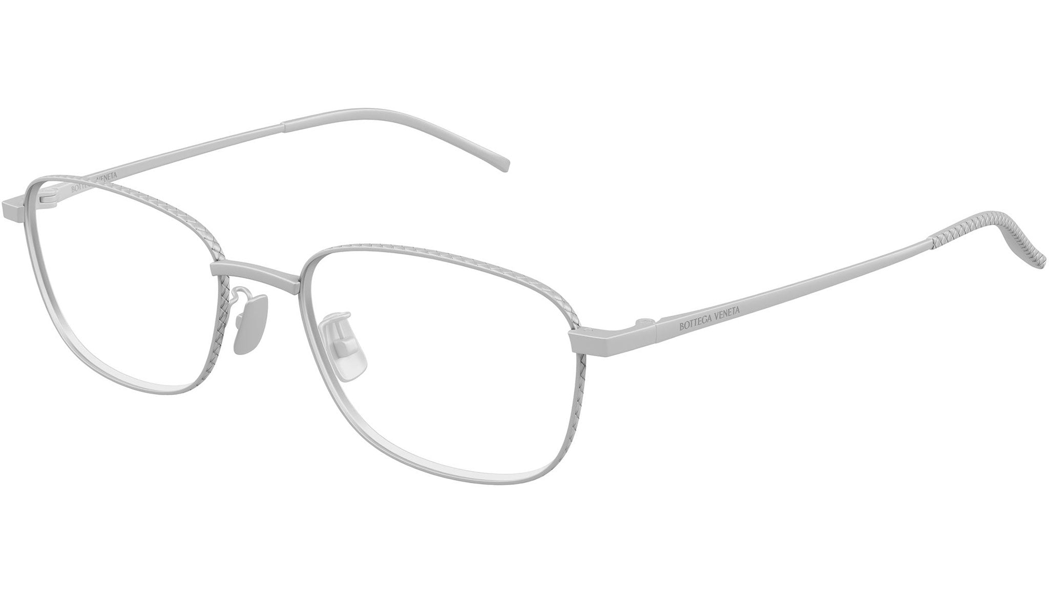 Lunettes Bottega Veneta BV1473OA 002 pour homme et femme, monture rectangulaire en titane argent antique semi-mat et verres de démonstration. Ligne : Intrecciato. Référence : BV1473OA. Code couleur : 002. Fabriquées au Japon. Revendeur en ligne agréé Bottega Veneta. Vos lunettes seront livrées avec leur étui et leurs accessoires d'origine et bénéficient d'une garantie internationale de 12 mois.
