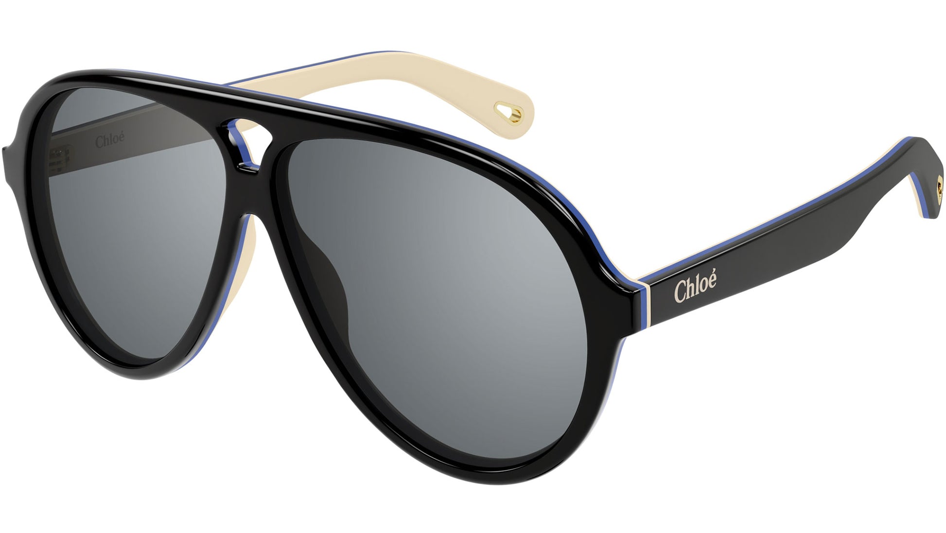 Chloé CH0211S 004 Black Silver Pilot Sunglasses