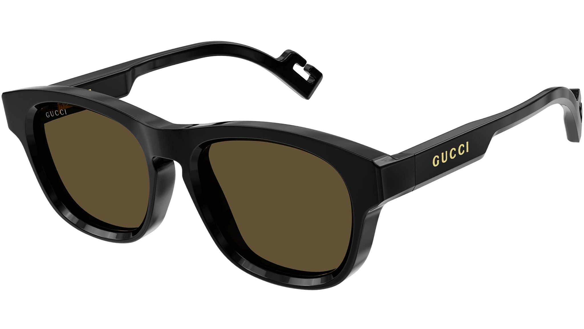 Gucci Logo collection sunglasses model GG1238S 004 featuring shiny black frame and solid brown lens.