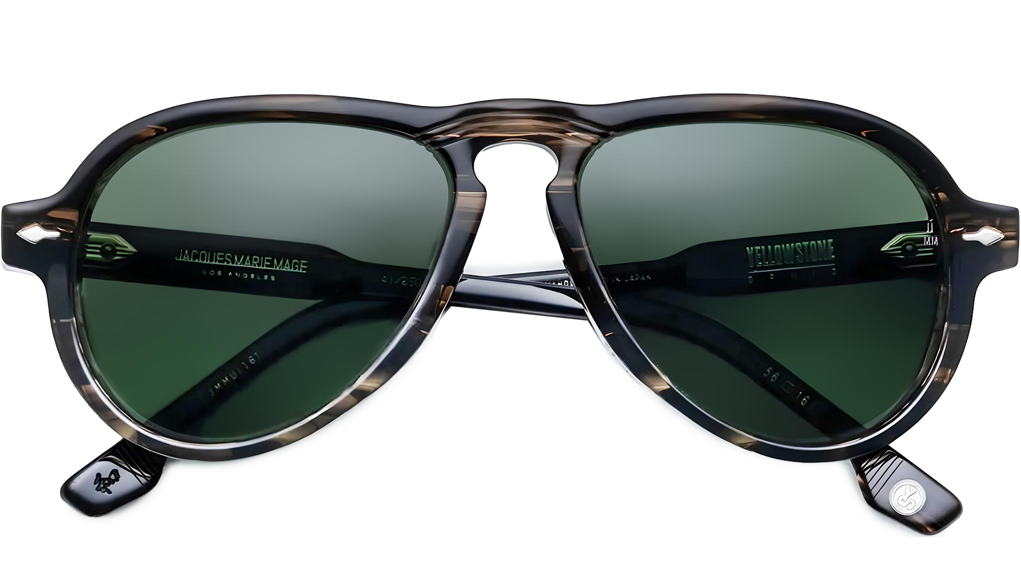 Les lunettes Druid de Jacques Marie Mage font partie de la collection Yellowstone, inspirée du style aviateur emblématique des années 80. Fabriquées en acétate végétal écaille taupe, ces lunettes élégantes et sculpturales sont dotées de verres en verre polarisés vert forêt, parfaits pour explorer les grands espaces. Des ornements en métal argenté poli, notamment des broches avant en pointe de flèche, des charnières, des rivets en forme d'éperon et des noyaux en fil de fer « Spiketail » gravés en ligne fine, rehaussent le design raffiné. Nommée d'après le légendaire Druid Peak Pack de Lamar Valley, cette monture soutient Yellowstone Forever, le partenaire à but non lucratif du parc national de Yellowstone.LOT DE PRODUCTION LIMITÉ DE 350 PIÈCESMonture en acétate de cellulose durcie de 10 mm de Savana avec branches en acétate doublement laminé personnalisées avec quincaillerie en métal précieux et verres en verre vert forêt polarisés. Le design comprend un médaillon argenté « YS » sur la pointe intérieure de la branche, une pointe de flèche argentée signature sur le devant, un fil de fer Snaketail argenté exposé et une charnière à 5 barillets personnalisée à tension dorée claire. Les verres polarisés offrent une clarté supérieure avec un traitement antireflet à l'arrière, assurant une protection UV à 100 %. Coffret monographique écologique Yellowstone marron avec détails en feuille d'or, accompagné d'un livret de garantie bordeaux. Comprend un étui souple Yellowstone en cuir et feutre écologique, un chiffon de nettoyage en microfibre Yellowstone Wolf et un certificat de presse à en-tête 100 % recyclable avec un numéro de série en édition limitée. Livré avec un code QR pour revendiquer la propriété numérique.