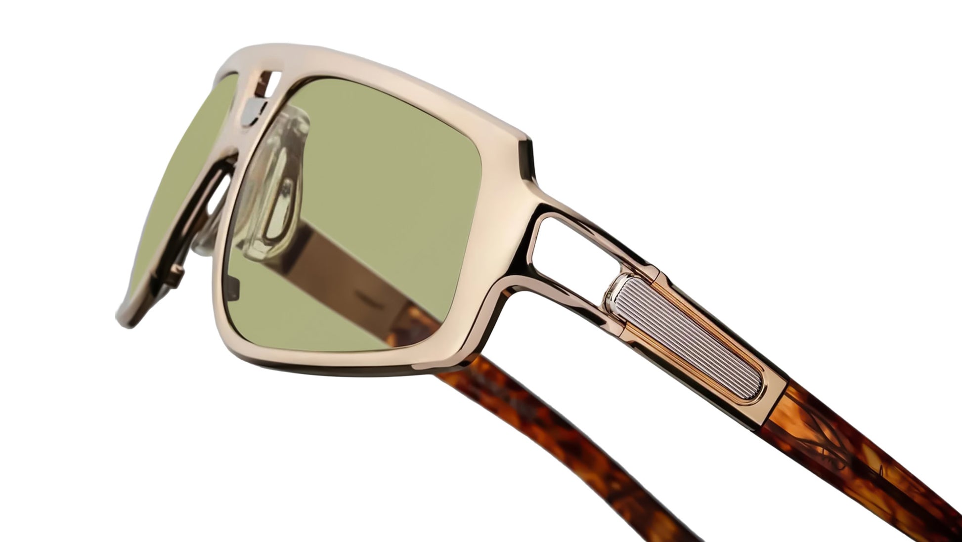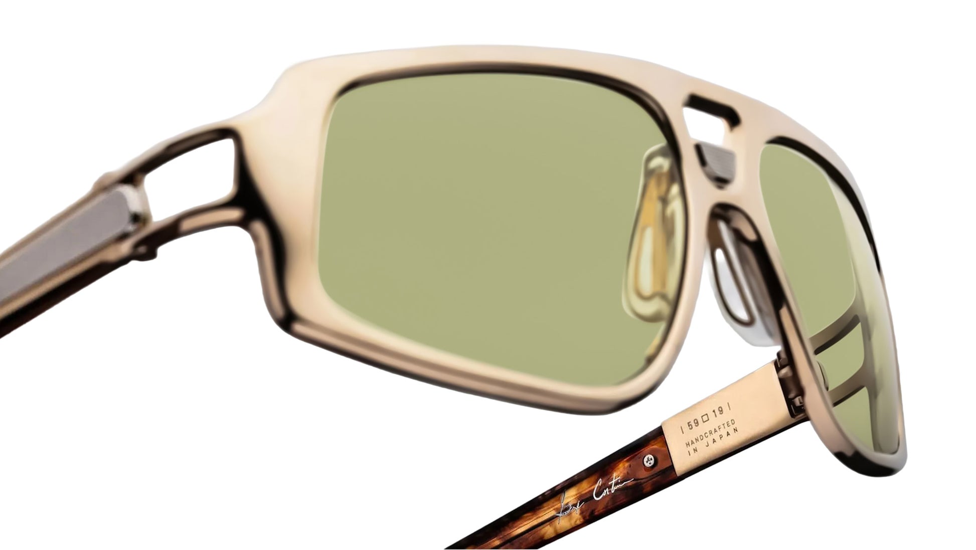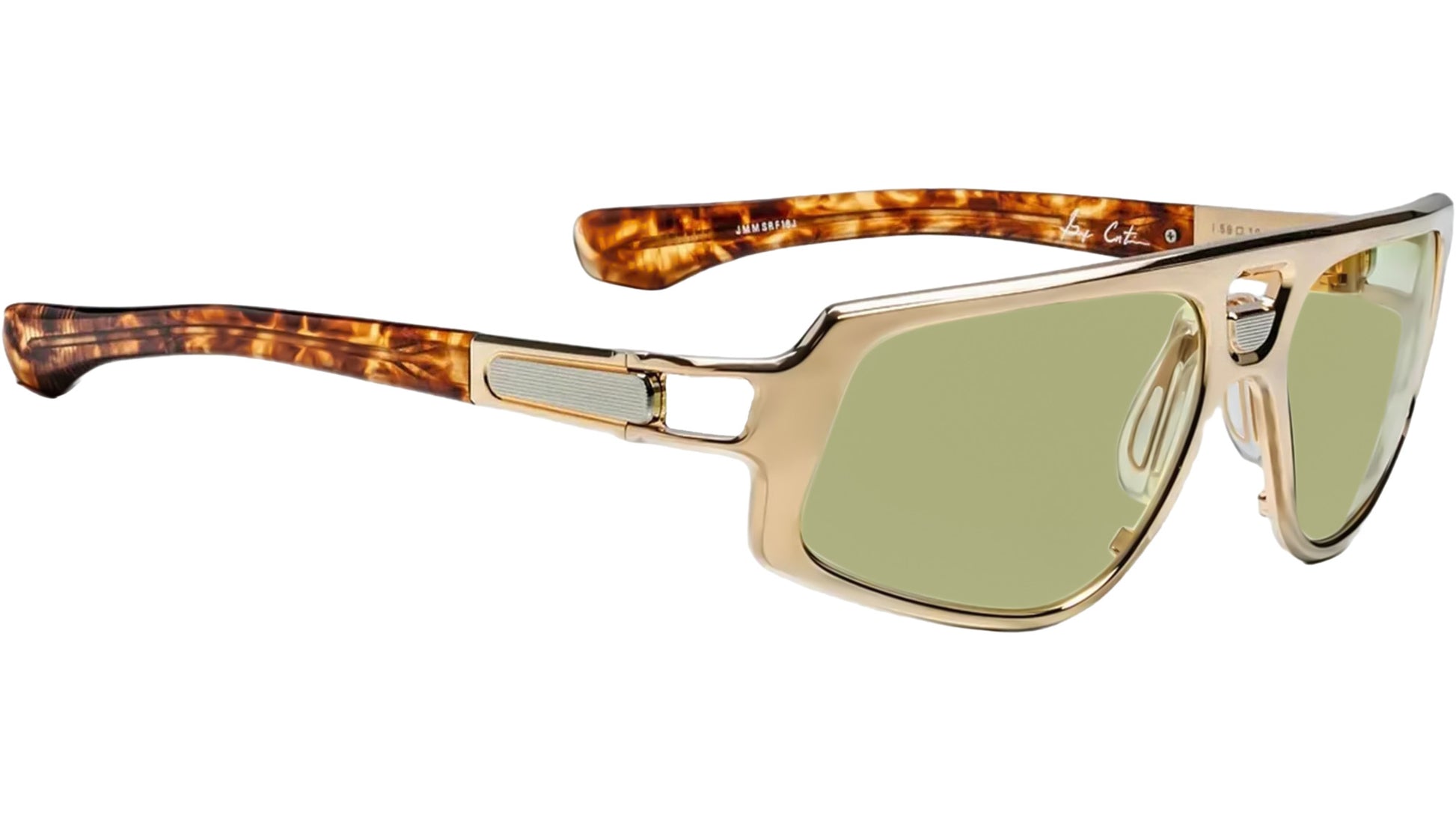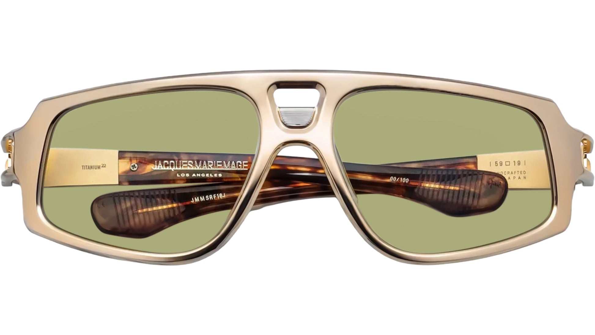 Conçues en collaboration avec George Cortina pour Jacques Marie Mage, les lunettes de soleil Scarface sont des lunettes de soleil expressives enveloppantes en titane, inspirées de la fin des années 60, qui incarnent une sophistication audacieuse et un raffinement technique. Fabriquées à la main au Japon, elles présentent une monture élégante en titane rehaussée d'un double pont distinctif, de découpes de branches complexes avec des ornements bicolores et des détails précis. Les embouts de branches en acétate écaille de tortue améliorent à la fois le confort et le style, tandis que les verres vert bouteille clair avec traitement antireflet au dos offrent une protection UV à 100 %. Ces lunettes en production limitée sont livrées dans des étuis rigides personnalisés avec un chiffon de nettoyage en microfibre et un certificat d'authenticité, reflétant l'engagement de la marque pour un savoir-faire haut de gamme et le luxe. PRODUCTION LIMITÉE DE 100 PIÈCES Soigneusement fabriquées en 100 % bêta-titane, elles présentent une face et des branches raffinées en or clair avec des détails argentés, complétées par des accents en acétate Havane et des embouts de branches en acétate à motif losanges. Une charnière monobloc sur mesure, fixée par tension, en or clair, assure l'intégrité structurelle et une fonctionnalité optimale. Équipées de verres Citrine CR-39 base 6, ces lunettes de soleil bénéficient d'un traitement antireflet à l'arrière et d'une protection UV à 100 %. Étui en cuir fabriqué à la main en Italie, chiffon de nettoyage/mouchoir en microfibre, emballage rigide recouvert de soie, certificat de presse à en-tête avec numéro de série de l'édition limitée et signature de l'artisan. Fabriquées au Japon. Code modèle : JMMSRF-16J