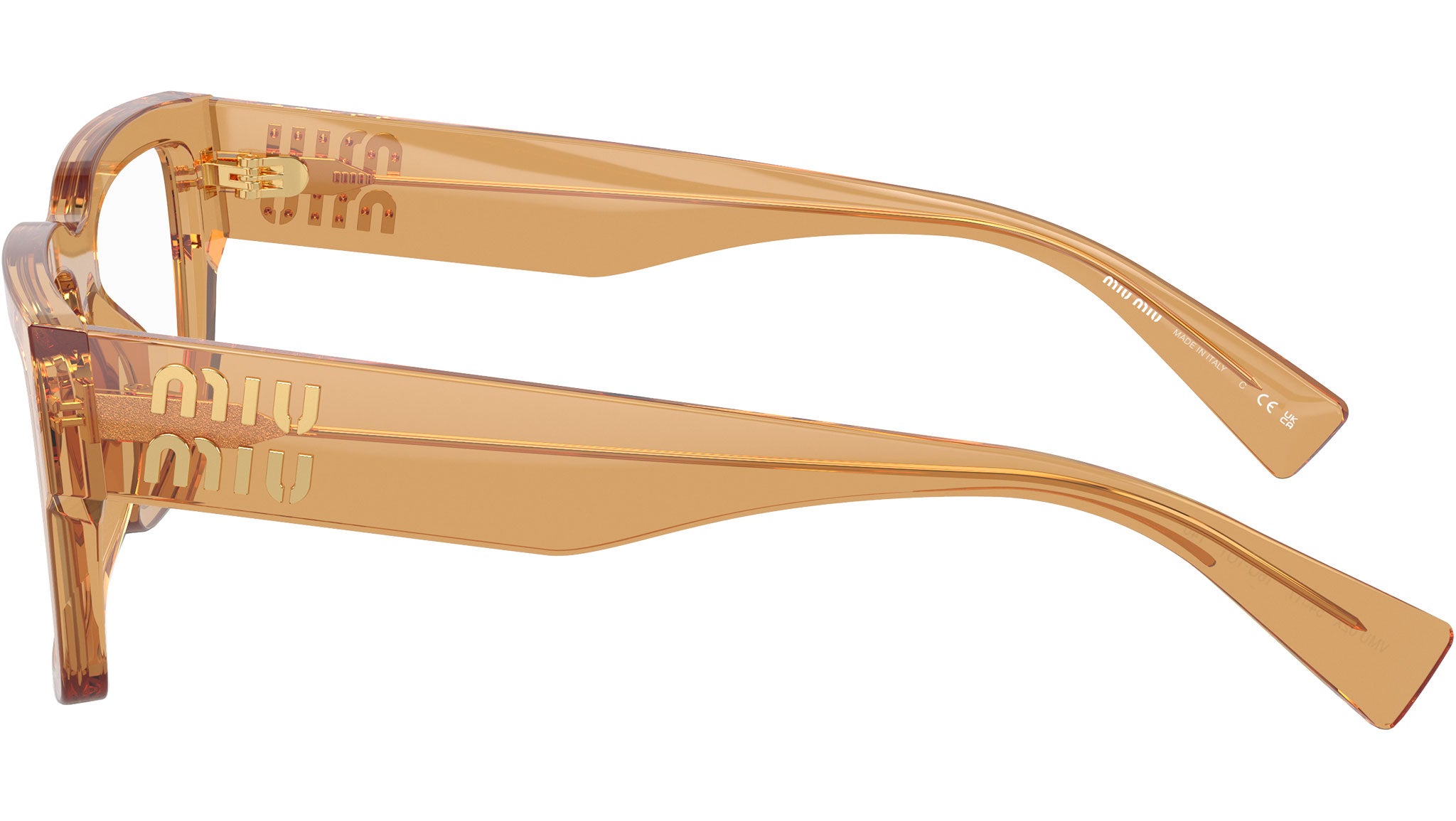 Collection de lunettes Miu Miu Immediate, modèle MU 02XV, monture rectangulaire en acétate transparente à jante complète en nèfle avec lentille de démonstration. Code produit MU02XV, code couleur 16Q1O1. Les lunettes Miu Miu sont l'incarnation d'une mode chic et sophistiquée. La ligne présente des designs uniques et avant-gardistes, avec des montures audacieuses, des couleurs vives et des détails complexes.
