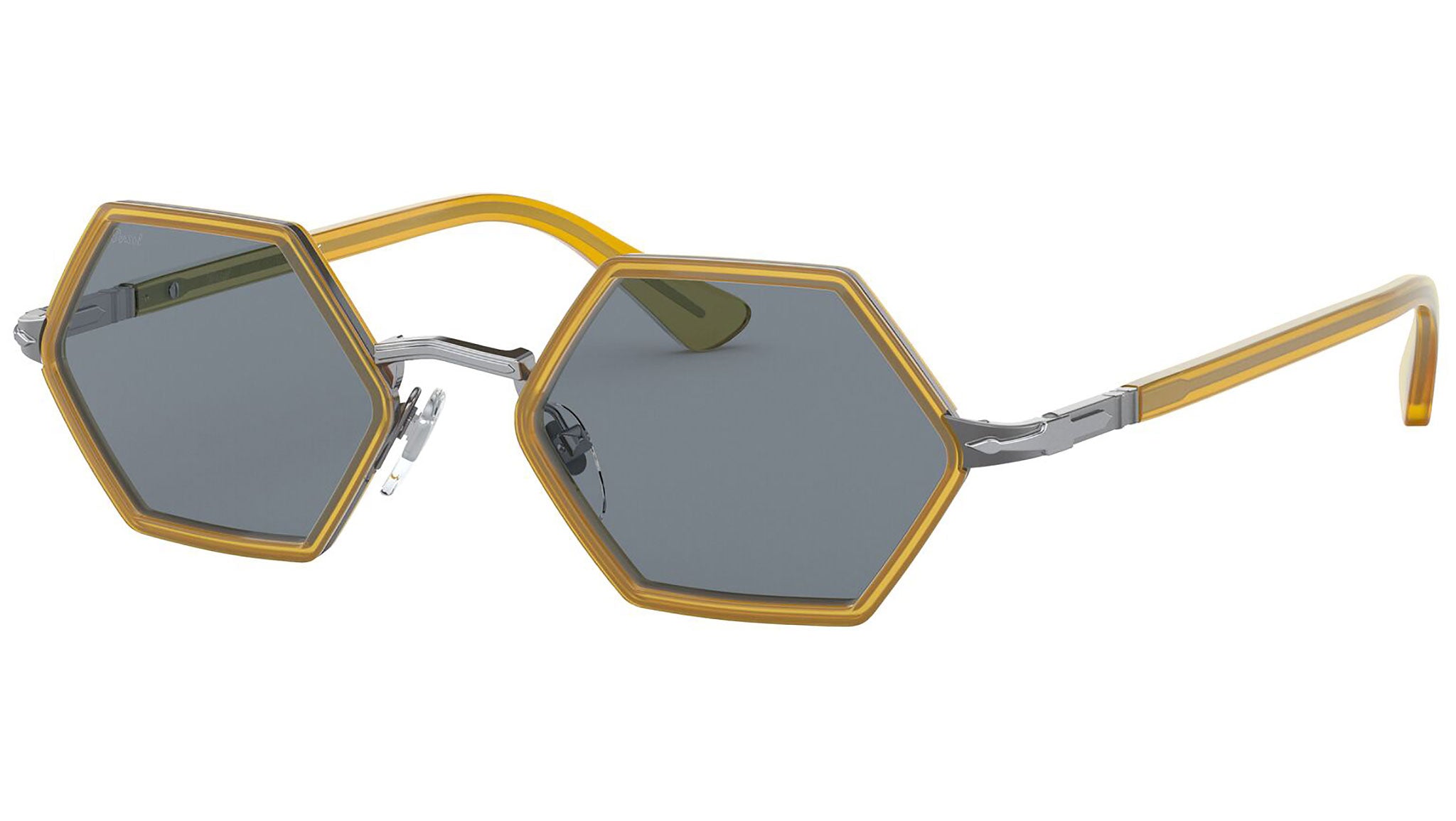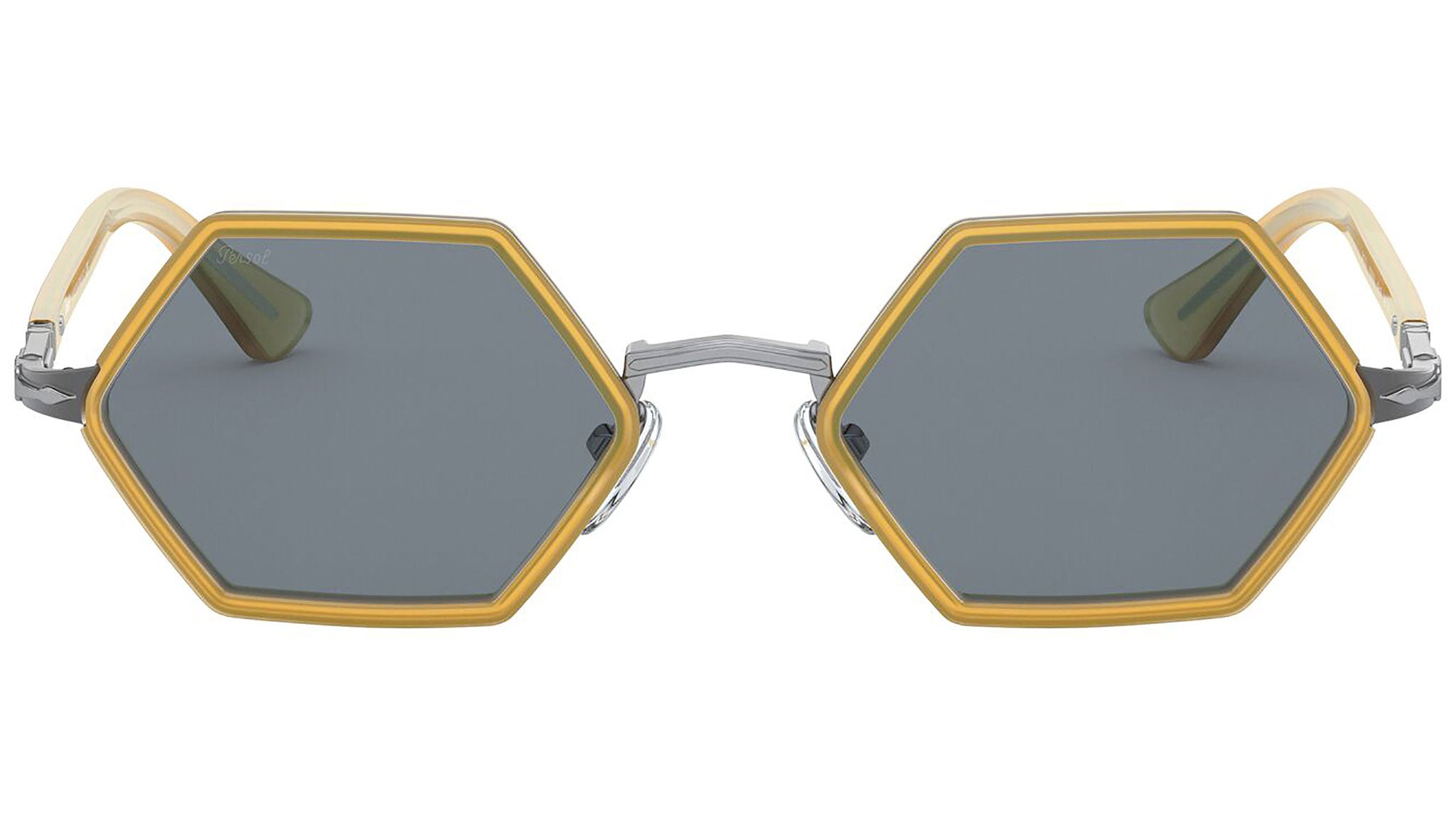"Introducing the hexagonal shape, with eye-catching proportions that put a playful spin on modern Persol design. Featuring a daring contemporary metal shape with colourful acetate rims, this model has a brand new inverted-V bridge and a thin, long-tip temple design. Persol Flex Arrow hinges offer essential Persol brand ID and a tailored fit". From standard to polarized, the selection of crystal sun lenses represent quality and excellence, made from the most precious optical materials and used to guarantee the best protection and visual clarity. Acetate from cotton and powdery pigments blend to form variations that can only be found in Persol glasses, unique for each frame. Made by hand with the highest quality materials, all these glasses are a natural work of art.
