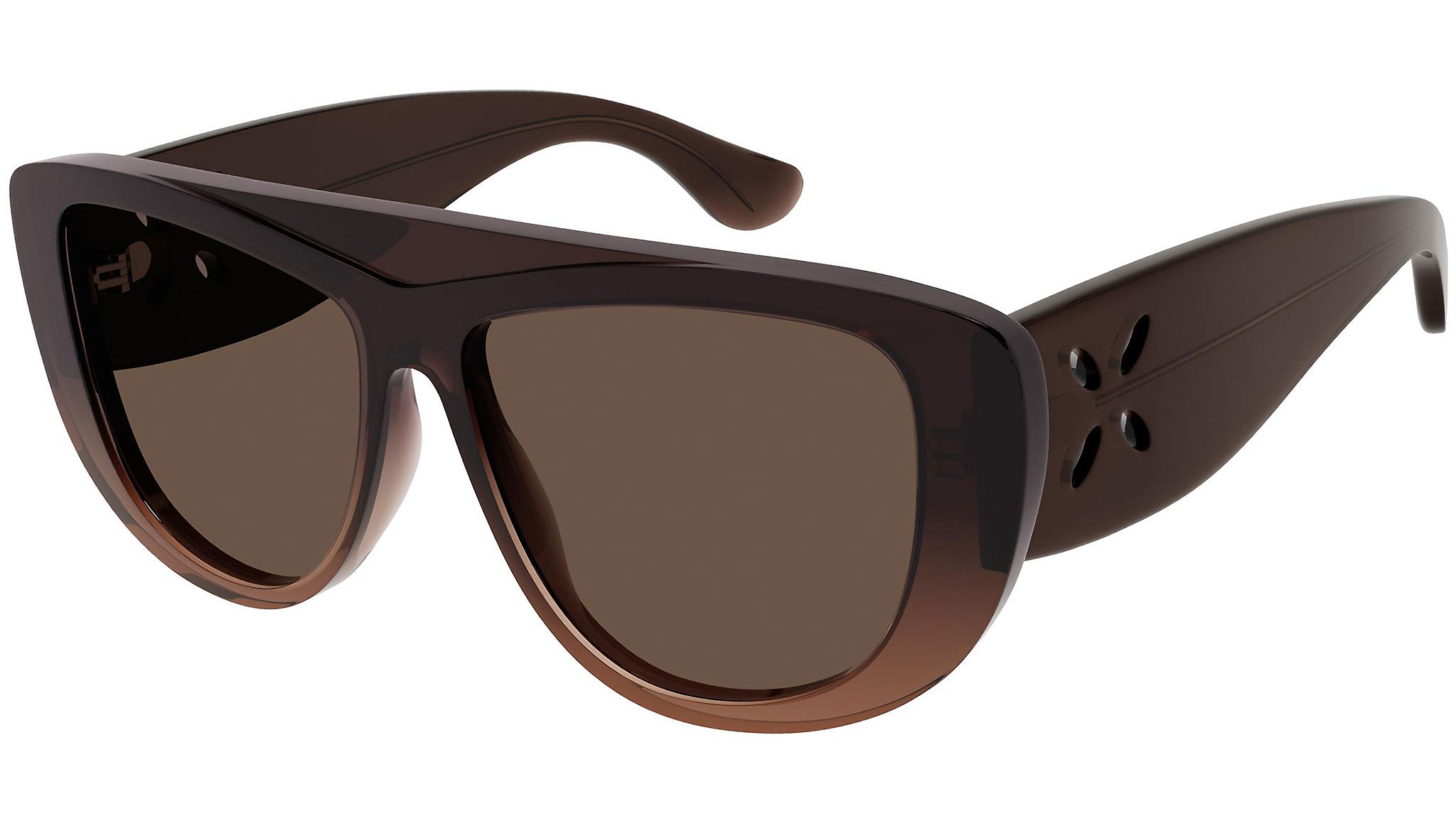 Occhiali da sole Azzedine Alaïa linea Pattern modello 0056S, variante colore 003 marrone scuro trasparente sfumato marrone con lenti color marrone tinta unita.