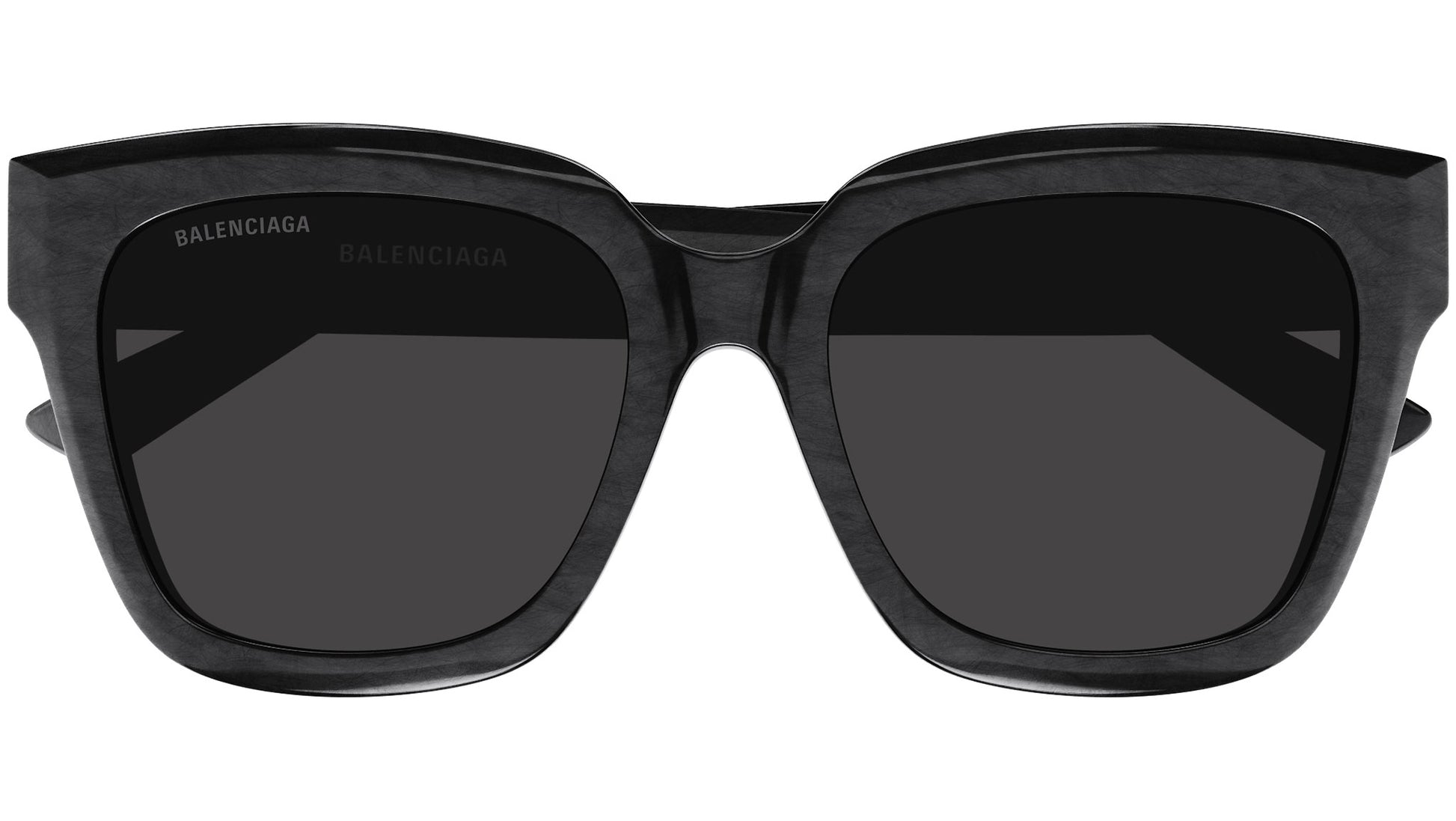 Occhiali da sole Balenciaga linea Everyday BB0237SA codice colore 001 con montatura nero anticato e lenti color grigio tinta unita.