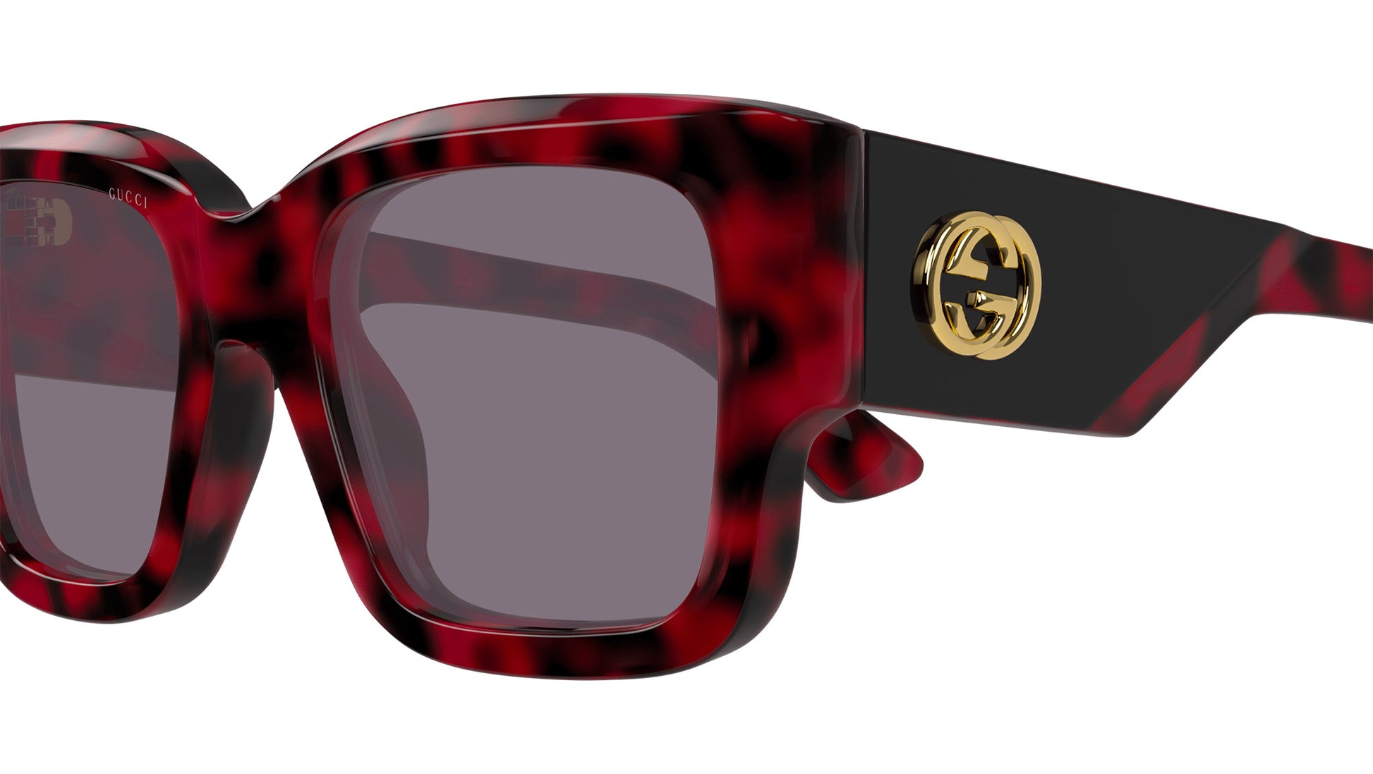 Gucci GG1663S 003 Red Havana Rectangular Sunglasses