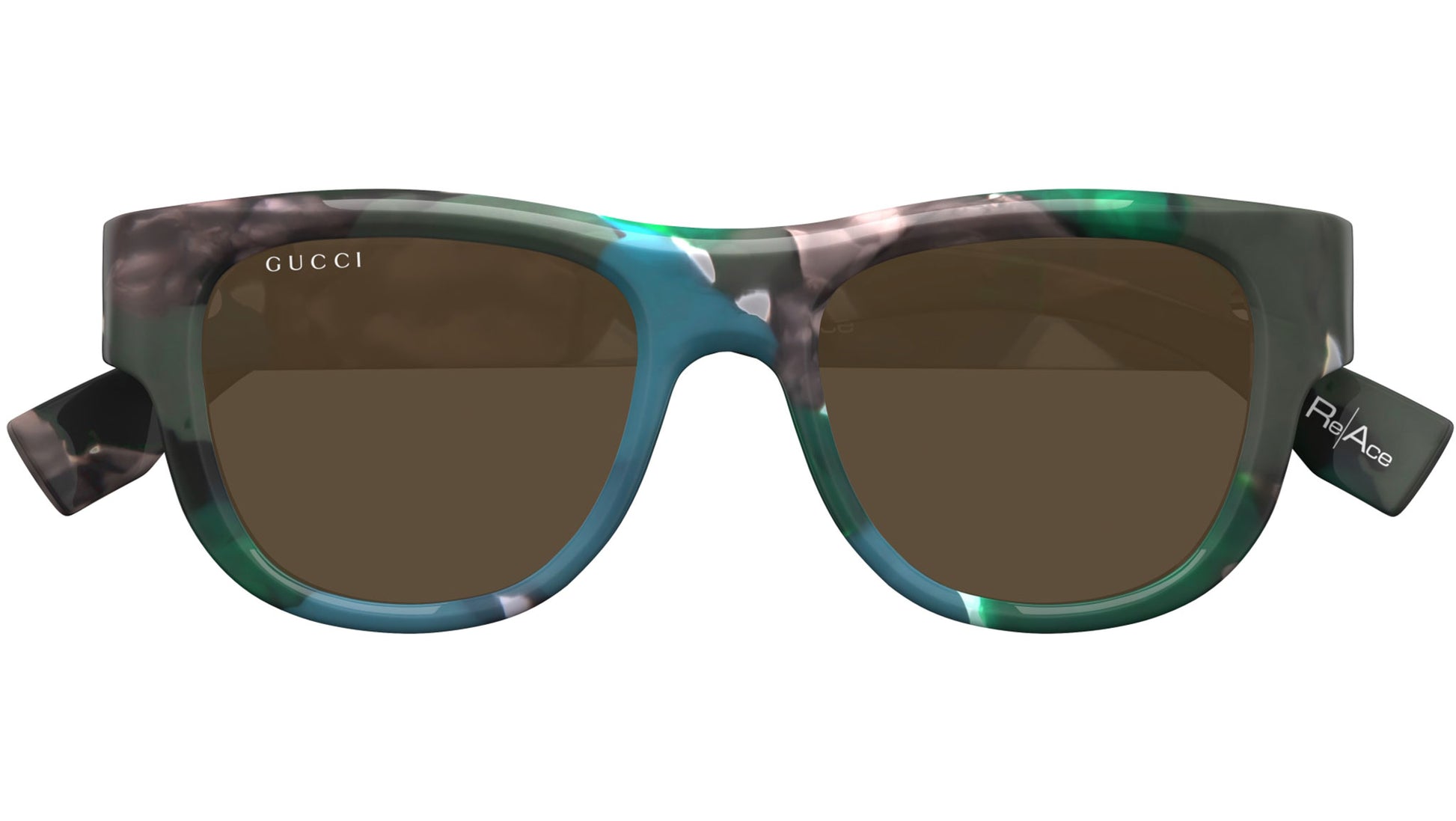 Gucci GG1750S 001 Green Pearled Rectangular Sunglasses