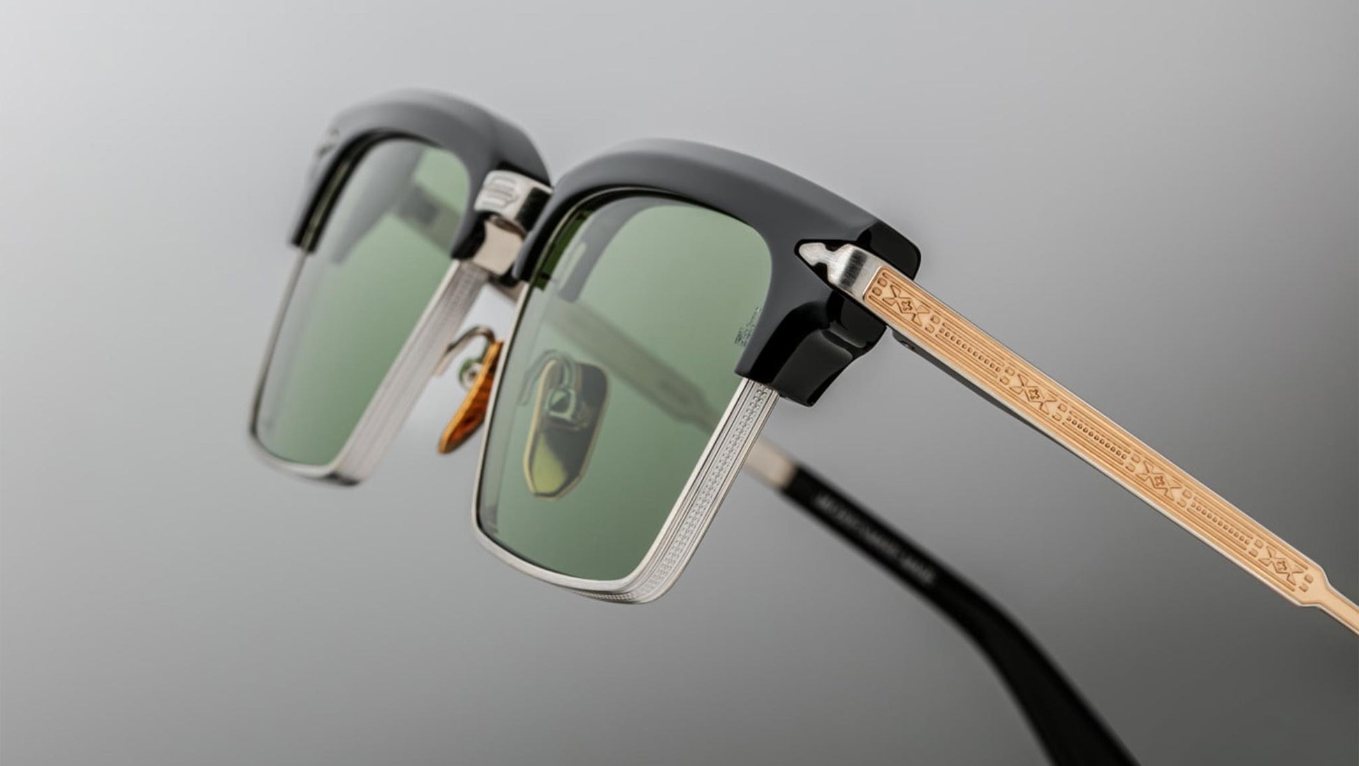 The Alin sunglasses by Jacques Marie Mage are a refined nod to classic '50s style, combining a bold acetate brow with a sleek square titanium lens rim. Featuring the brand's signature arrowhead monoblock hinge and finely engraved temples with a distinctive arrowhead motif, these spectacles embody sophistication and craftsmanship. Designed for those who appreciate timeless elegance, they offer a perfect balance of vintage inspiration and modern ambition.