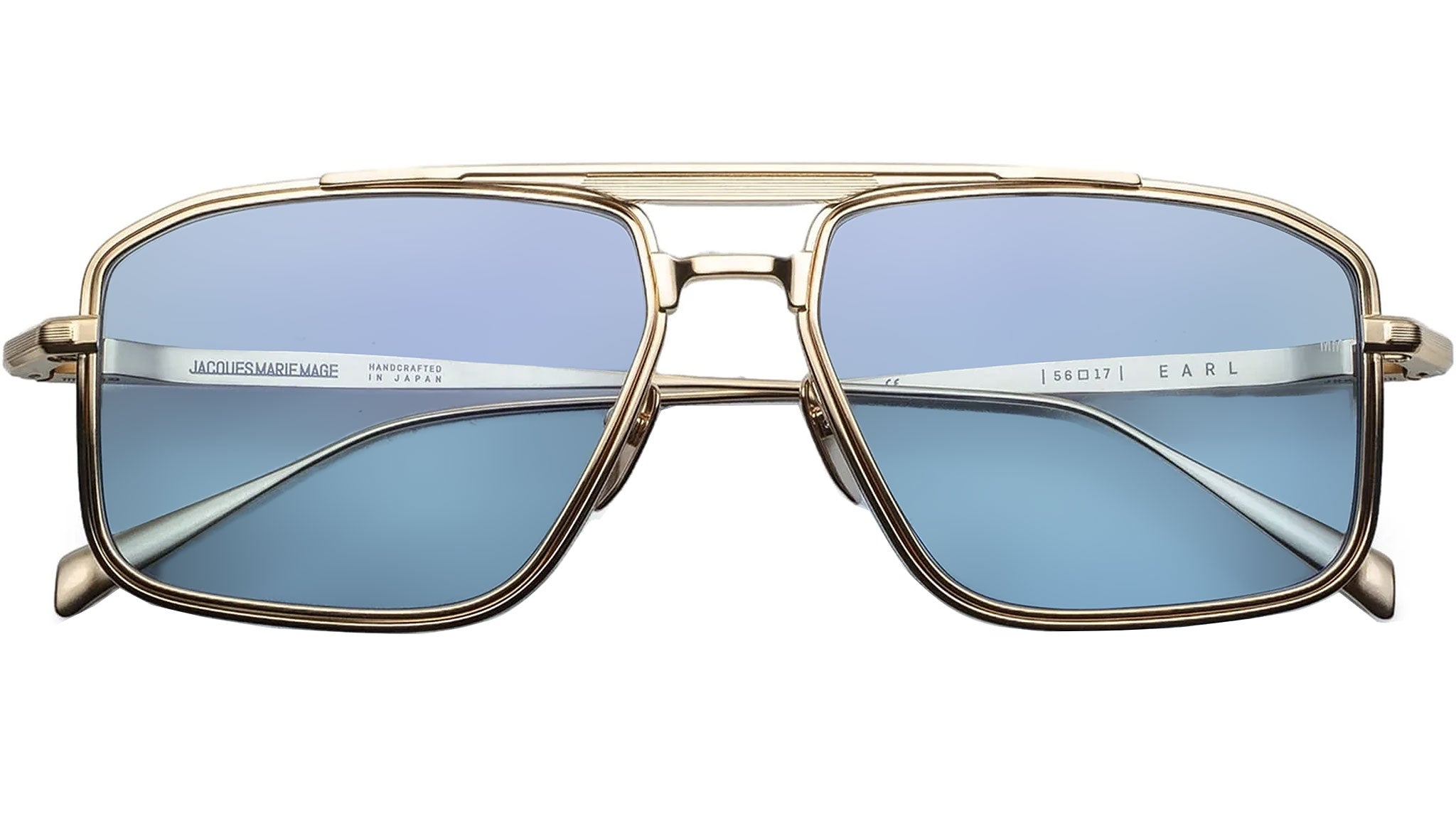 The Jacques Marie Mage Earl is a sleek, 1970s-inspired titanium navigator that blends vintage sophistication with contemporary precision. This limited-edition design features unique 4mm titanium lens-rim inserts and dual-tone detailing across the brow and temples, elevated by signature Art Deco embellishments. Crafted with refined resilience, the Earl stands as a tribute to bold vision and timeless style, embodying the spirit of maverick design and artisanal craftsmanship.