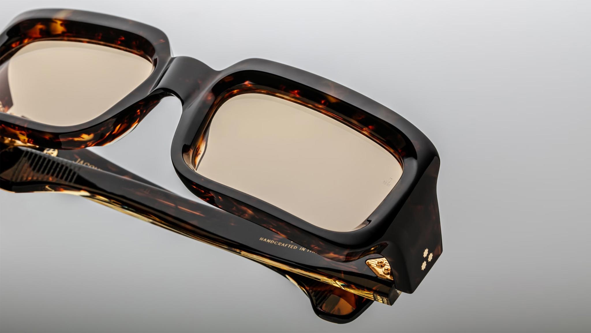 A timeless Havana 8mm cured cellulose acetate frame complemented by custom double-laminated acetate temples and accented with exquisite dark gold precious metal hardware. Made in Italy, the design features an exposed dark gold gauntlet wirecore, dark gold tension-secured custom 7-barrel hairline hinge, and Yellow CR-39 6-base lenses with backside anti-reflective treatment, offering a bold look with 100% UV protection. Frame total width: mm.