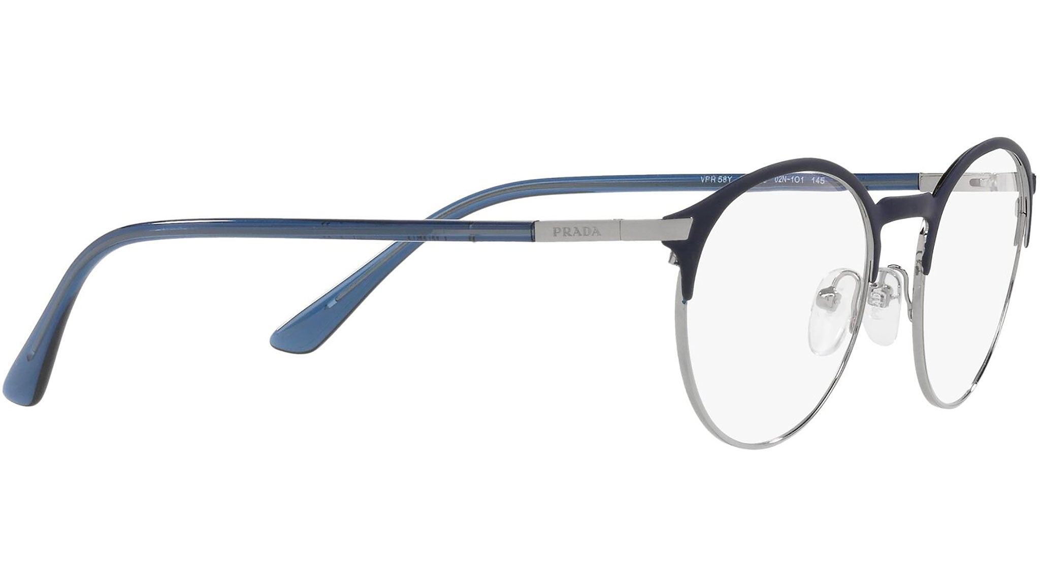 Occhiali da vista Prada modello PR 58YV variante colore blu opaco, codice colore 02N1O1. Prada rappresenta il vertice della tradizione e della moda Italiana. È uno dei brand più innovativi, prestigiosi e più riconosciuti nel mondo del fashion e degli accessori di lusso, massima espressione della cura per i dettagli, emblema di stile, nella sua raffinata interpretazione dei nuovi trend della moda internazionale.