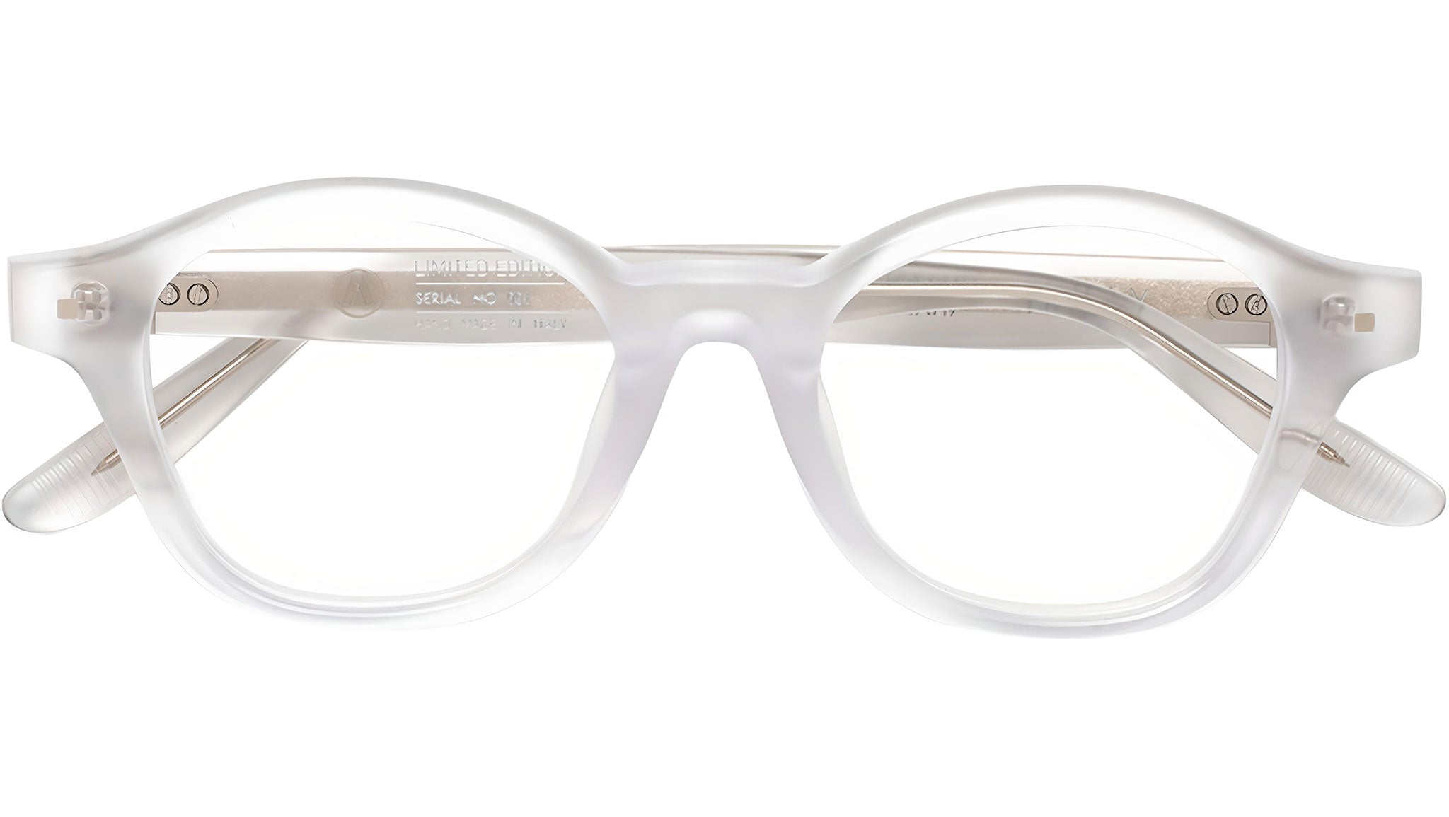 Okulary Ottomila Holly Crystal dla mężczyzn i kobiet, z przezroczystą, jasnoszarą okrągłą oprawką octanową i soczewkami demonstracyjnymi. Edycja limitowana. Linia marki: Seasonal. Kod stylu: 1KQ. Wyprodukowano we Włoszech. Autoryzowany sprzedawca online 8000 Eyewear. Twoje okulary będą zawierały oryginalne etui i akcesoria oraz są objęte 12-miesięczną globalną gwarancją.