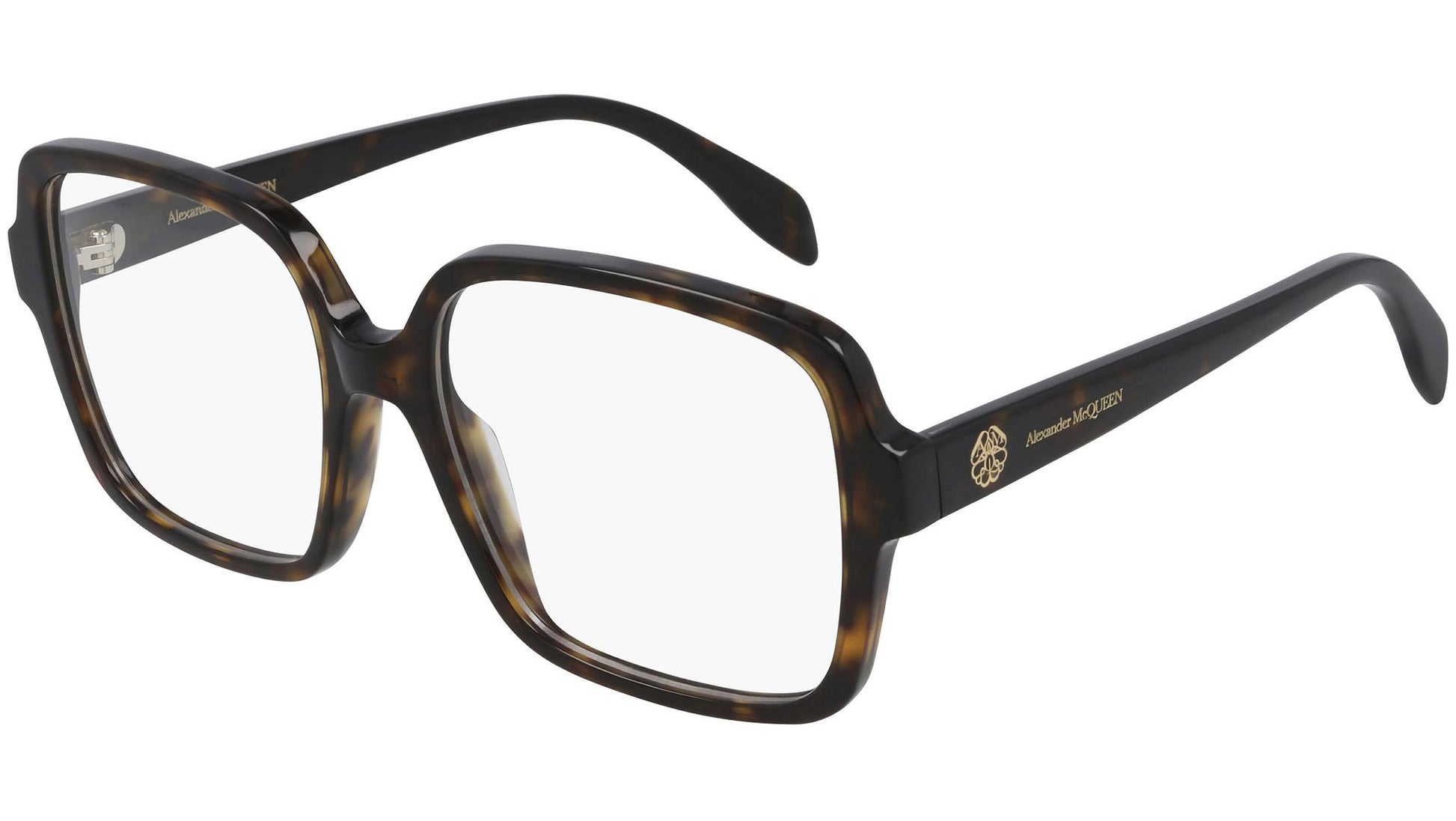 Alexander McQueen AM0286O 002 Havana Rectangular Glasses