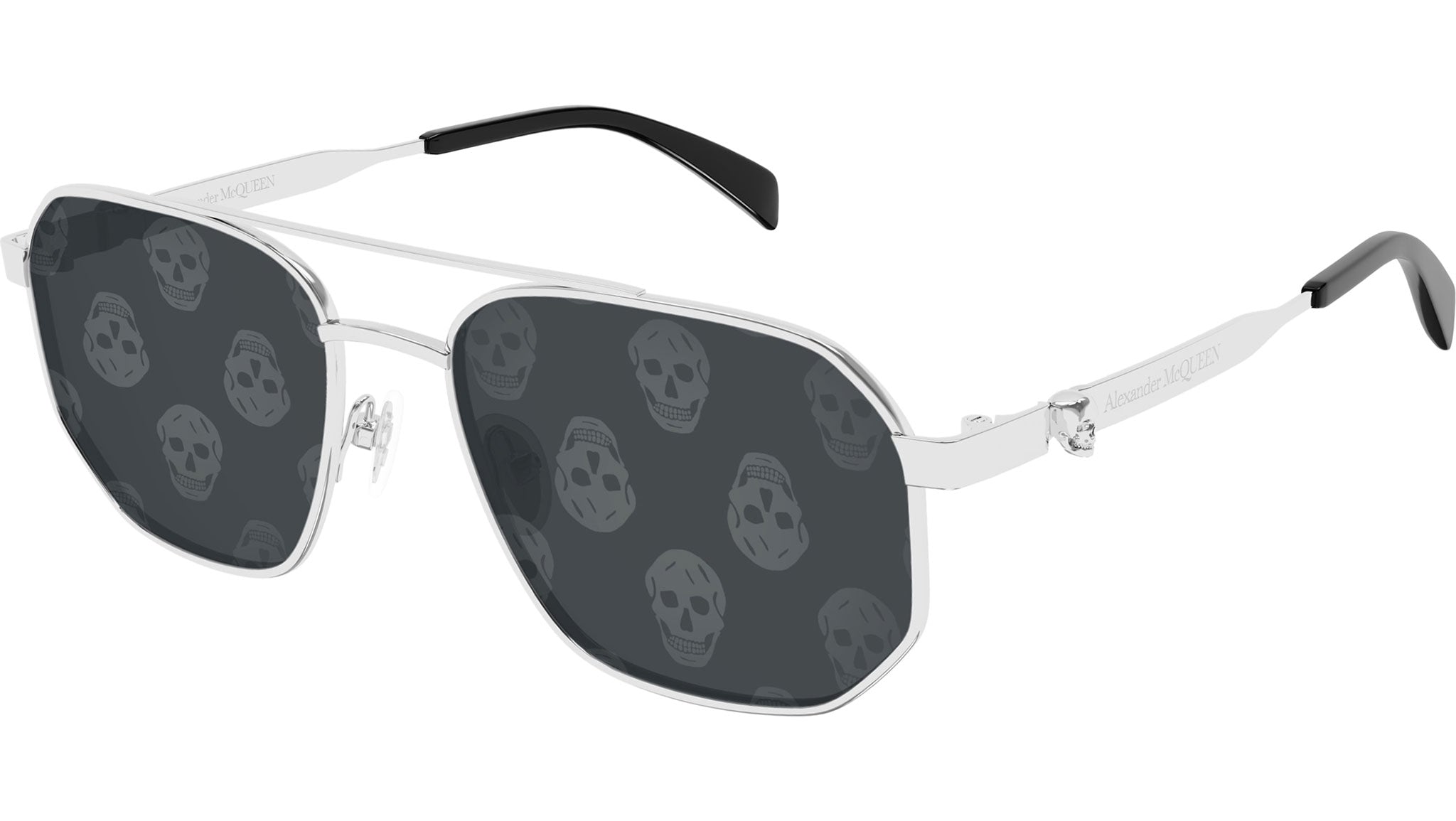Alexander McQueen AM0458S 004 Silver Pilot Sunglasses