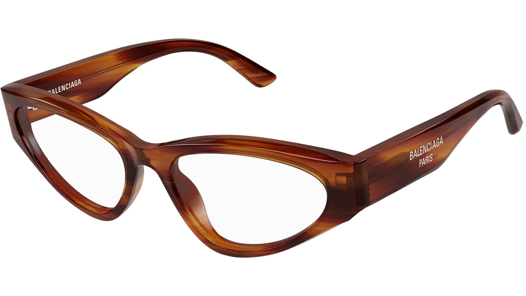 Balenciaga BB0391O 002 Brown Havana Melange Cat Eye Glasses
