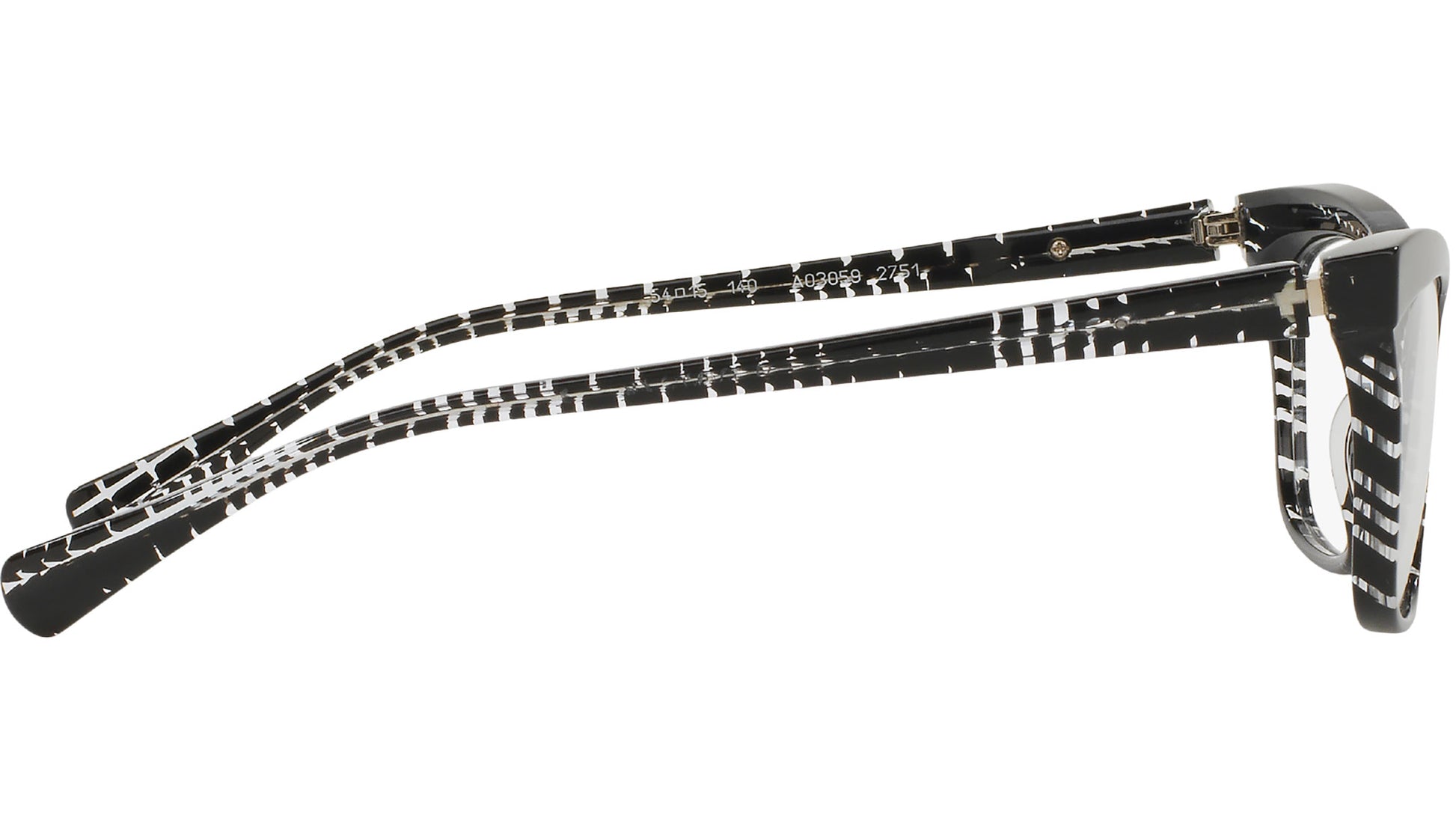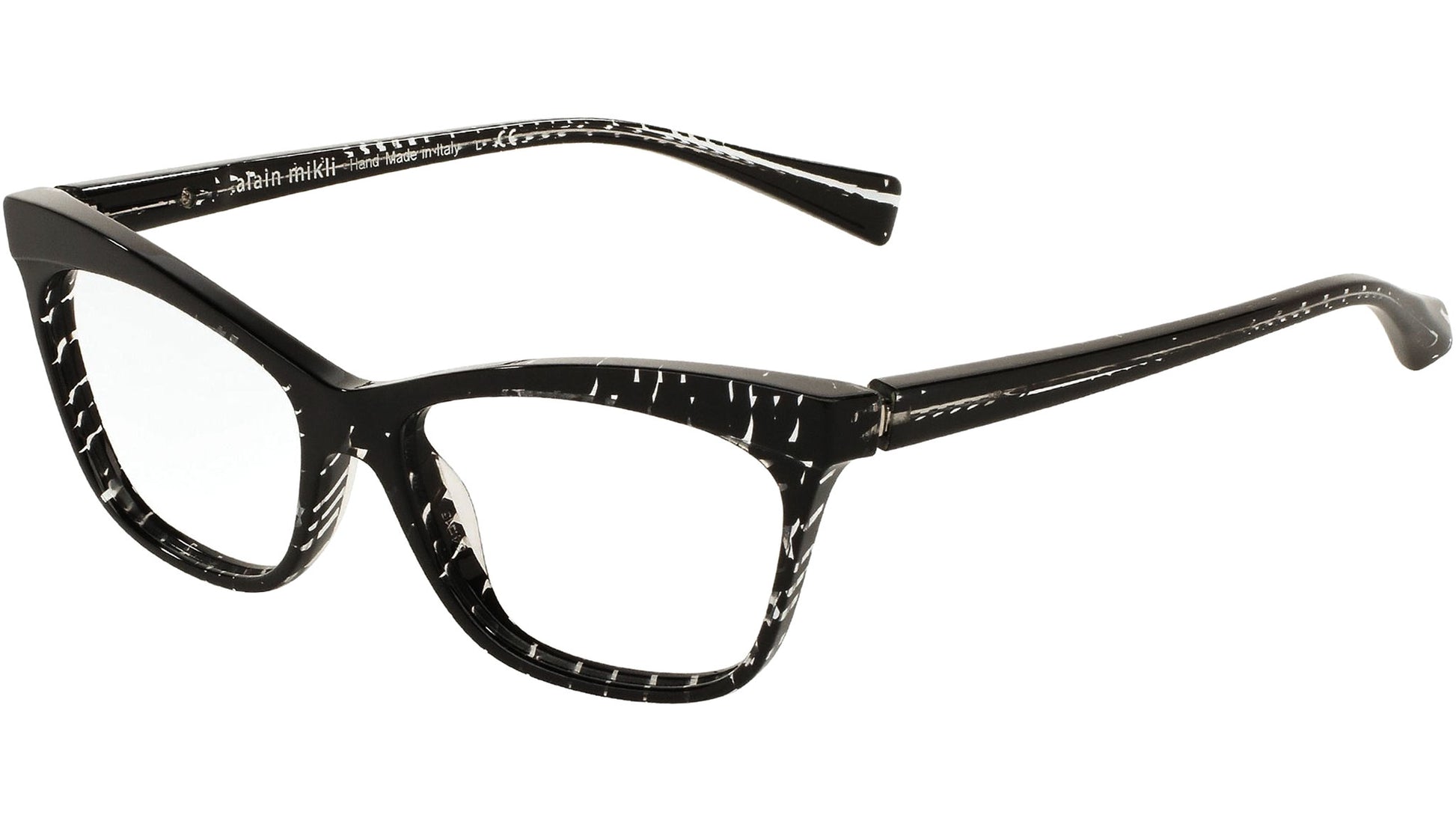 Alain Mikli Eyewear Collection model 0A03059, check black on crystal frame variant, color code 2751. Alain Mikli is known for pioneering eyewear as an accessory. The brand fuses art with fashion to create frames that are wearable yet distinctive and provocative – with unique design and exclusive color combinations.