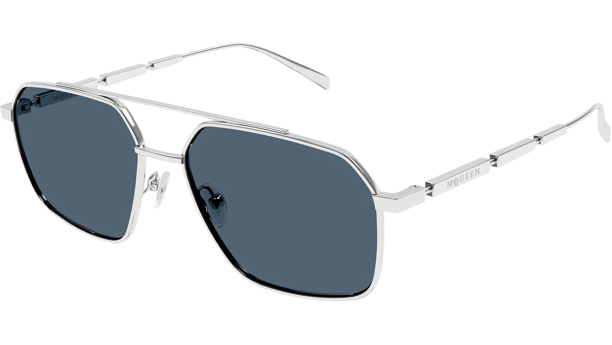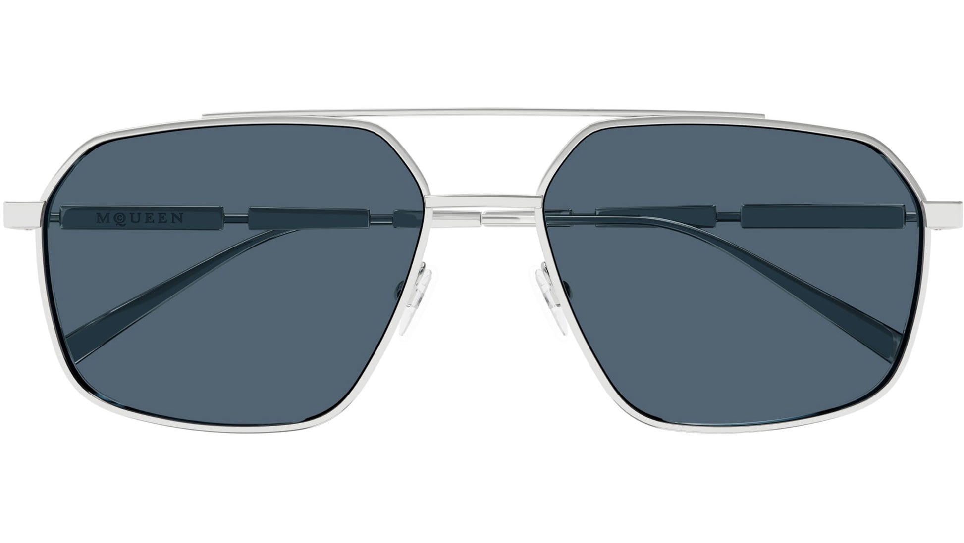 Alexander McQueen AM0477S 004 Shiny Silver Pilot Sunglasses