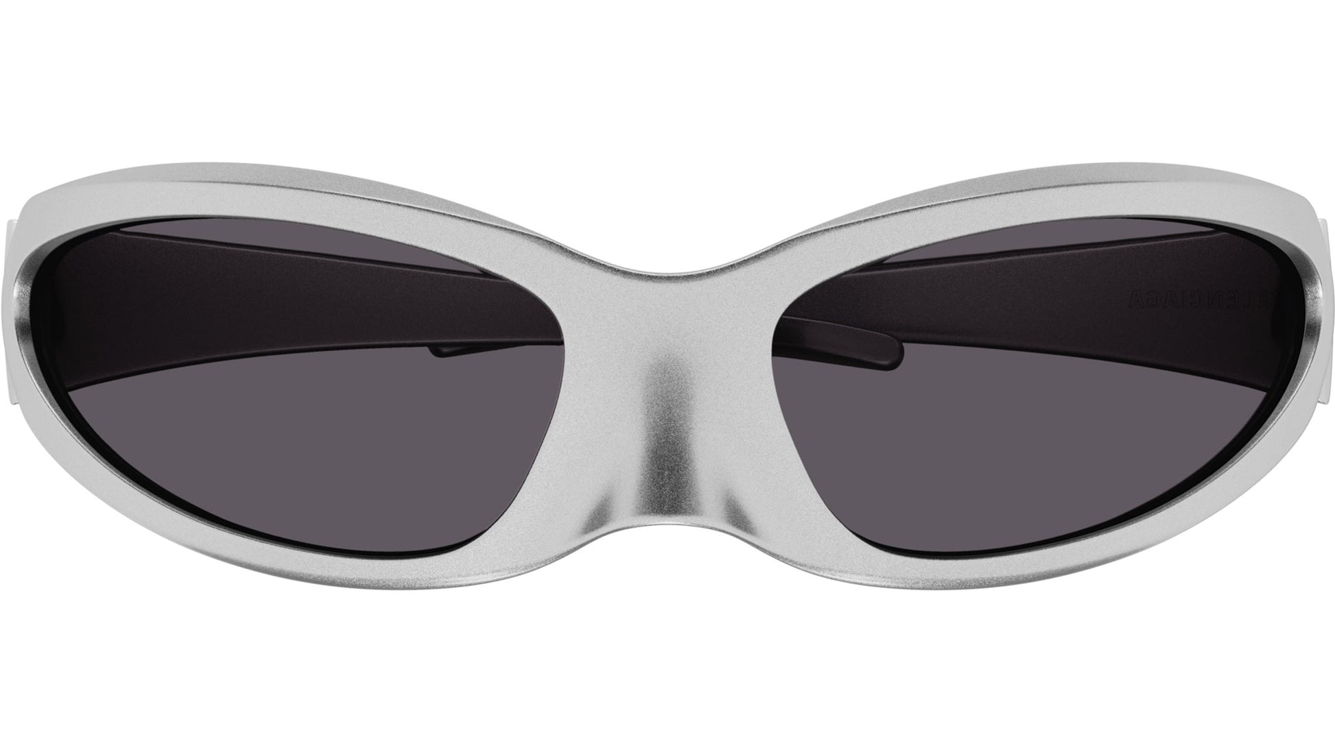 Balenciaga Extreme collection sunglasses model BB0251S 005 featuring shiny metallic silver frame and solid smoke lens.