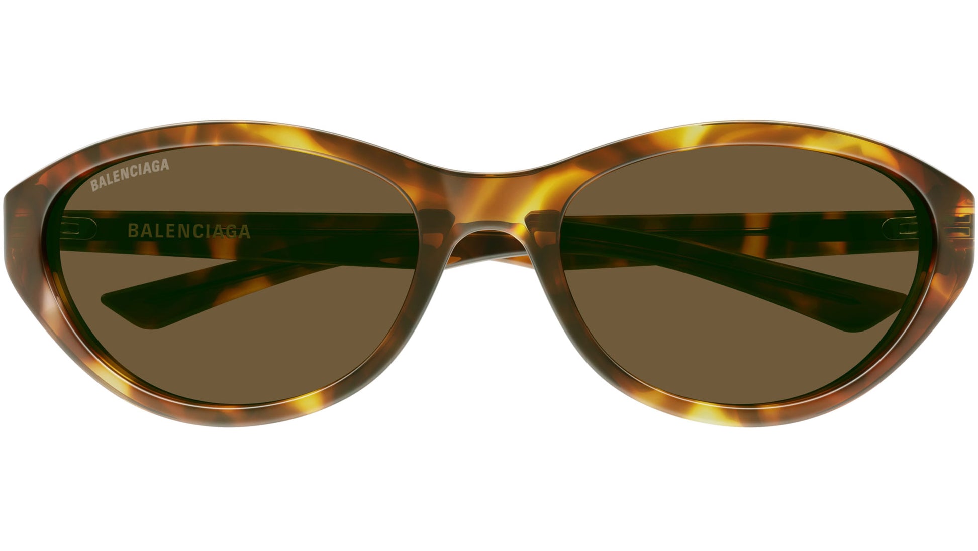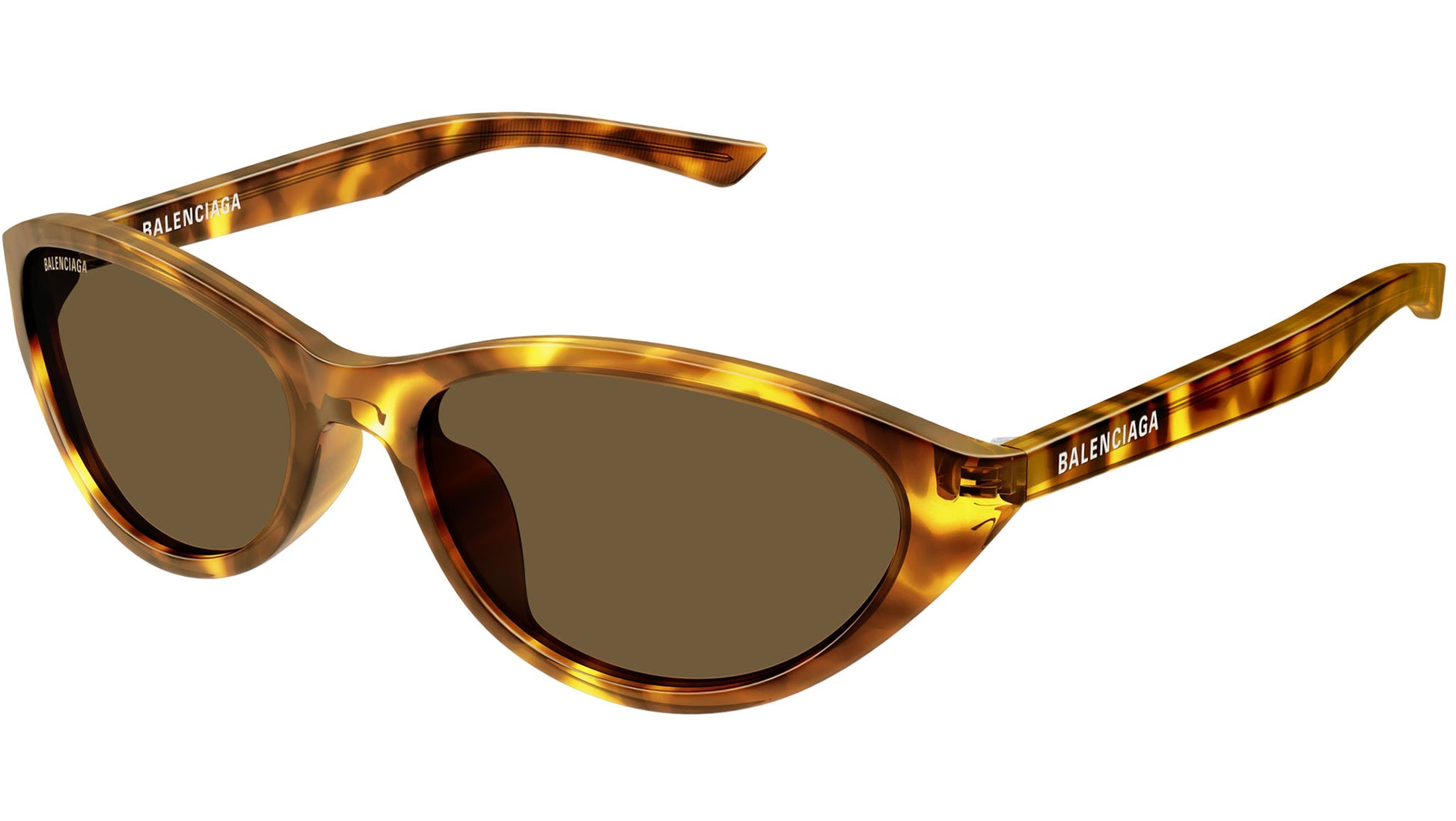 Balenciaga BB0404SK 002 sunglasses for women, featuring shiny blond havana panthos recycled acetate frame and solid nicotine bio nylon lenses. Brand line: Everyday. Style code: BB0404SK. Color code: 002. Made in Italy. Authorized Balenciaga online reseller. Your glasses will include the original case and accessories and are covered by a 12-month global warranty.