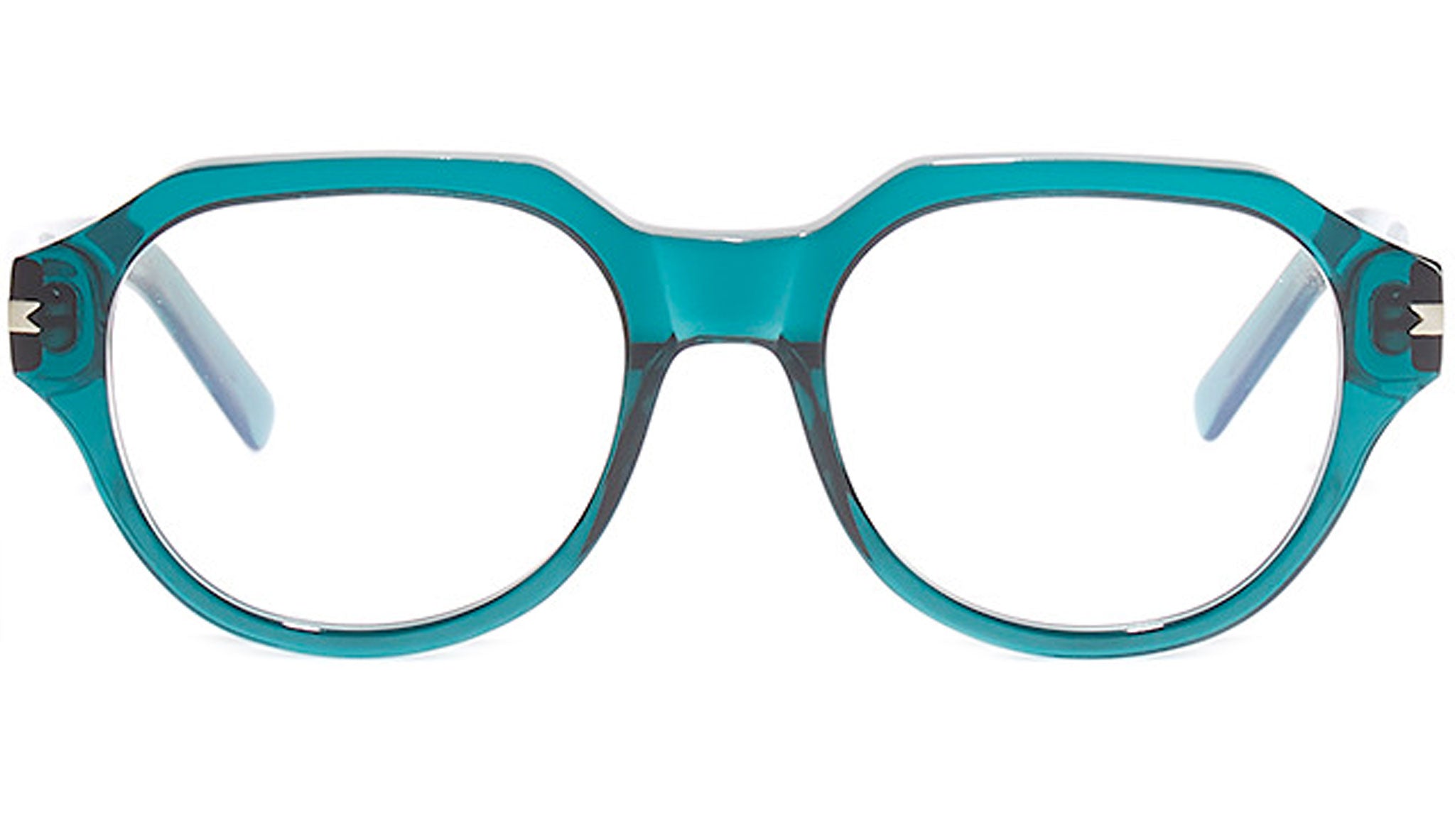 Acetate frame in green, lenses with antiglare filters.
