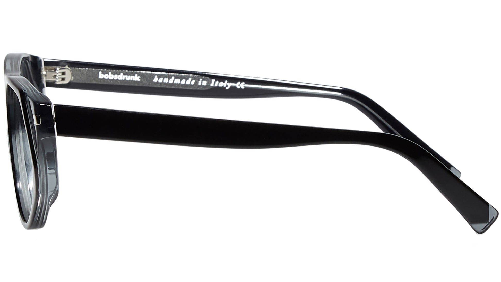 Bobsdrunk Carmen optical model in 119 color variant, black / transparent grey. Timeless products and bold shapes coexist in this 2023 optical collection. The lines are masterfully designed to create a “bold lightness” effect.Every pair of glasses is characterized by an emblematic detail shown on the front and on the temple tip, which highlights the value of the brand. The detail represents the union of the initial and final letter of Bobsdrunk in a single symbol. The careful choice of materials, the selection of workmanship and the extensive chromatic research are the prerogatives for every Bobsdrunk creation.