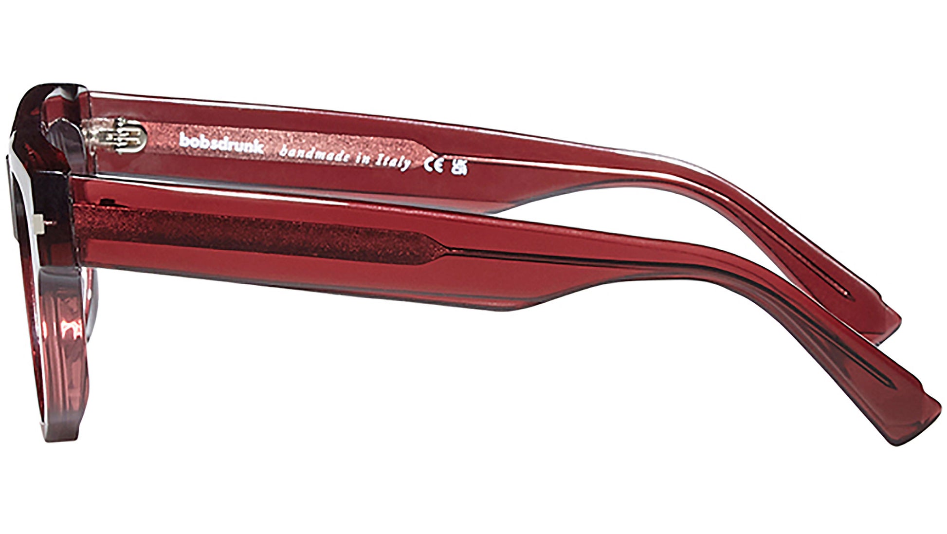 Bobsdrunk Link optical model in 140 color variant, transparent burgundy. Timeless products and bold shapes coexist in this 2023 optical collection. The lines are masterfully designed to create a “bold lightness” effect.Every pair of glasses is characterized by an emblematic detail shown on the front and on the temple tip, which highlights the value of the brand. The detail represents the union of the initial and final letter of Bobsdrunk in a single symbol. The careful choice of materials, the selection of workmanship and the extensive chromatic research are the prerogatives for every Bobsdrunk creation.