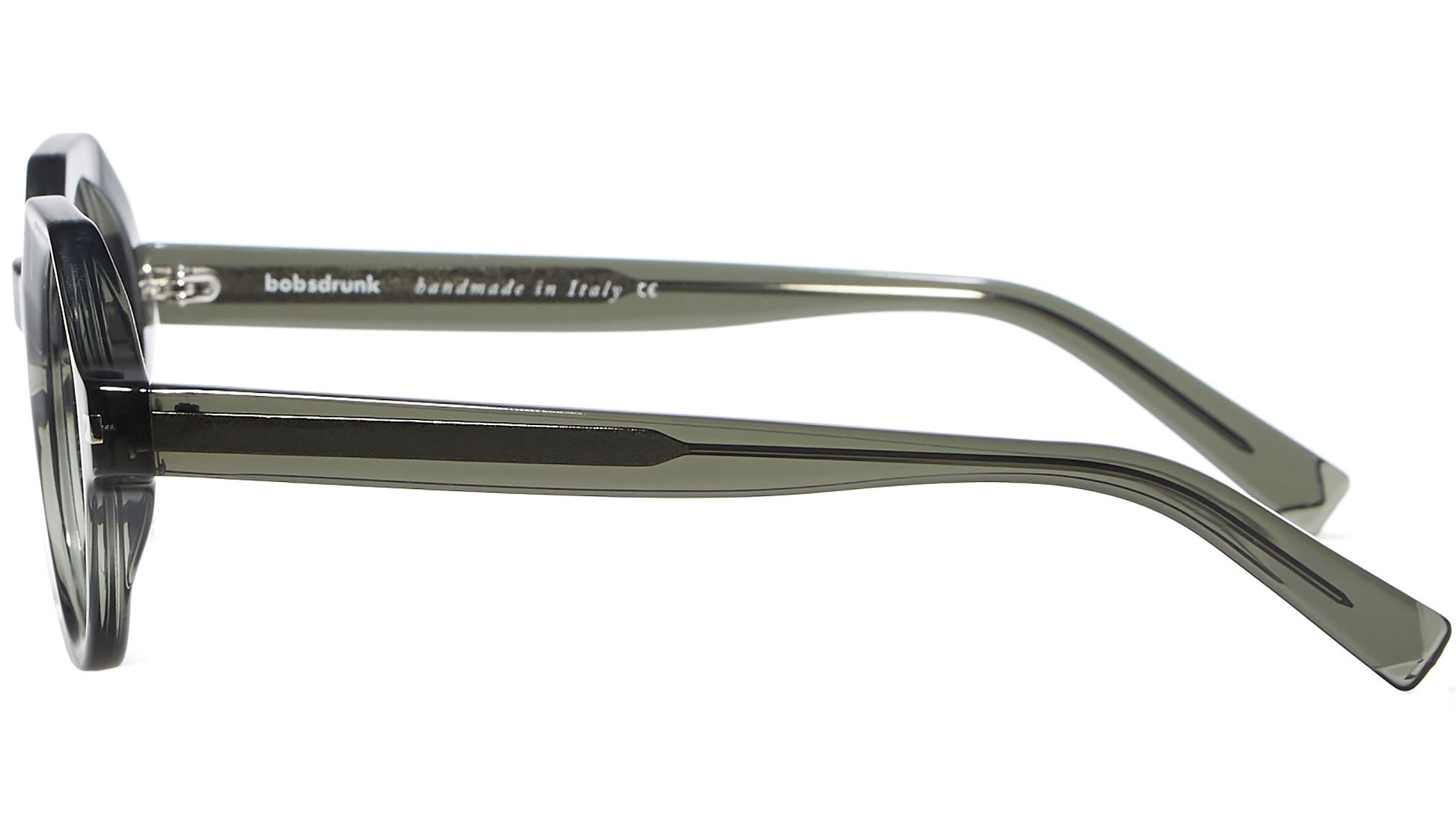 Bobsdrunk Alfie optical model in 151 color variant, transparent green / grey. Timeless products and bold shapes coexist in this 2023 optical collection. The lines are masterfully designed to create a “bold lightness” effect.Every pair of glasses is characterized by an emblematic detail shown on the front and on the temple tip, which highlights the value of the brand. The detail represents the union of the initial and final letter of Bobsdrunk in a single symbol. The careful choice of materials, the selection of workmanship and the extensive chromatic research are the prerogatives for every Bobsdrunk creation.