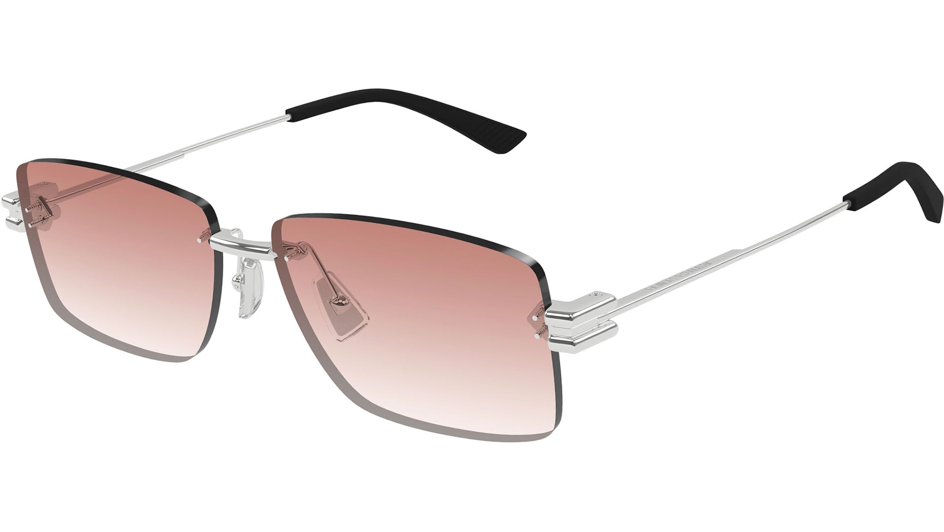 Bottega Veneta BV1126S 007 Shiny Silver Rectangular Sunglasses