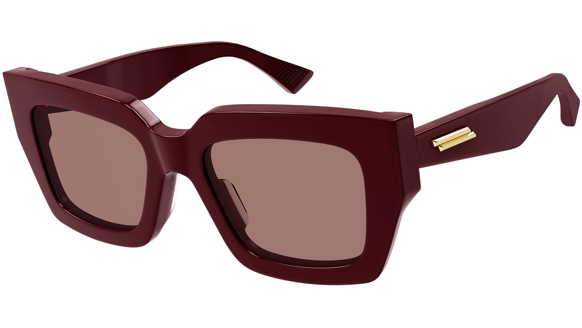 Bottega Veneta New Classic sunglasses collection model BV1212S color code 004 shiny solid burgundy featuring solid antique pink lens.