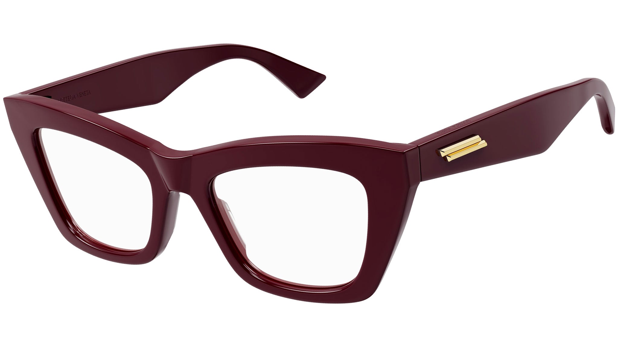 Bottega Veneta New Classic optical collection model BV1215O color code 004 shiny solid burgundy featuring burgundy temple.