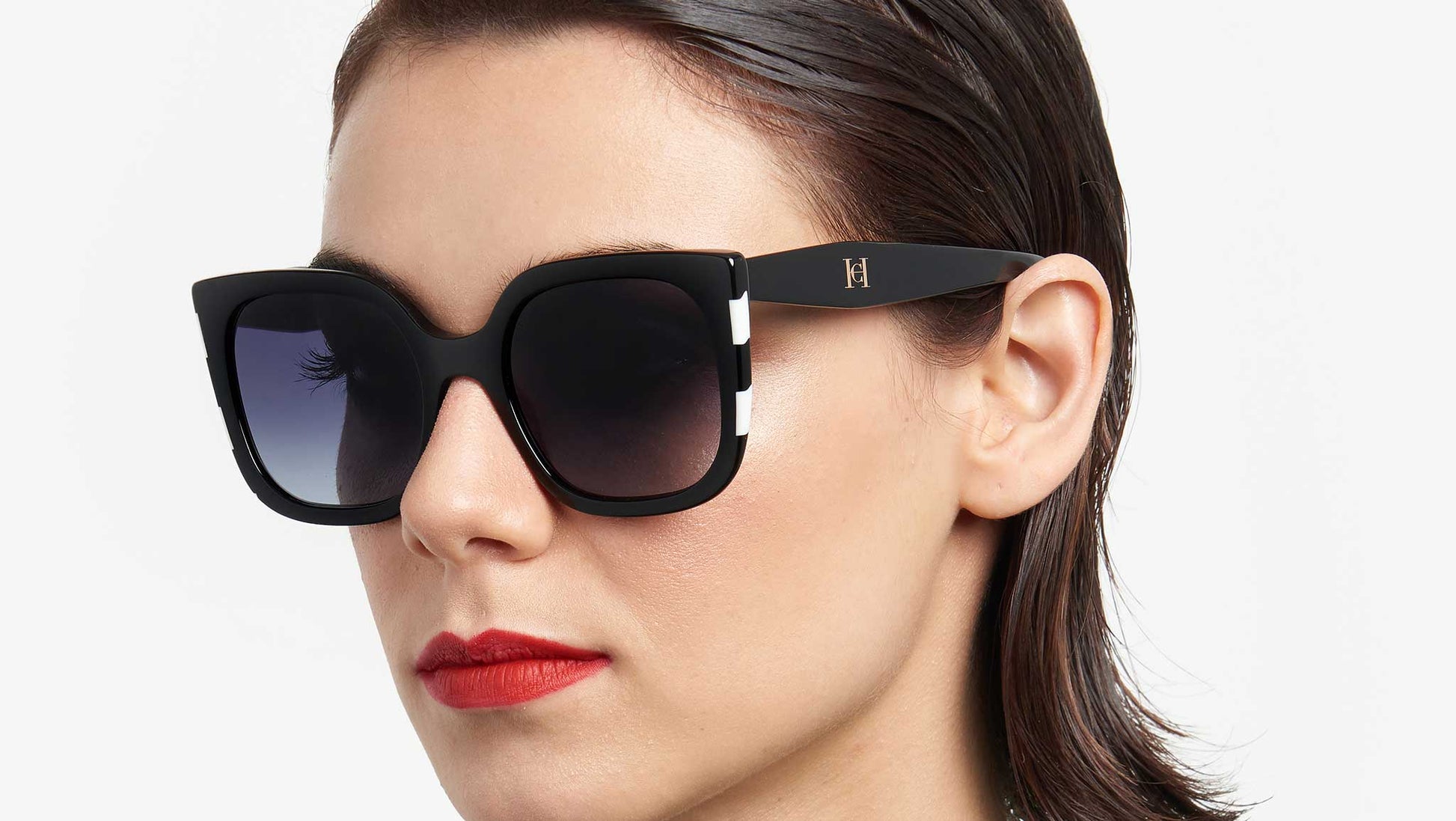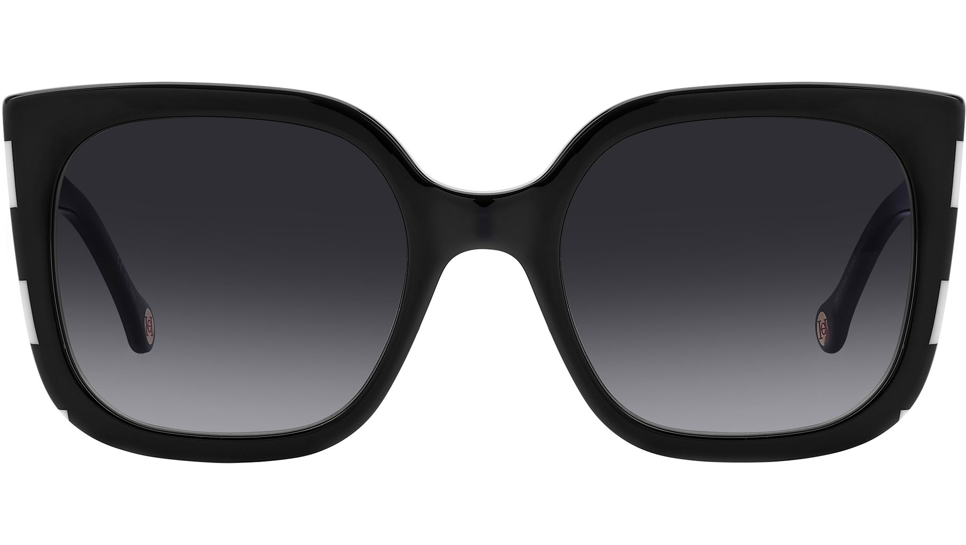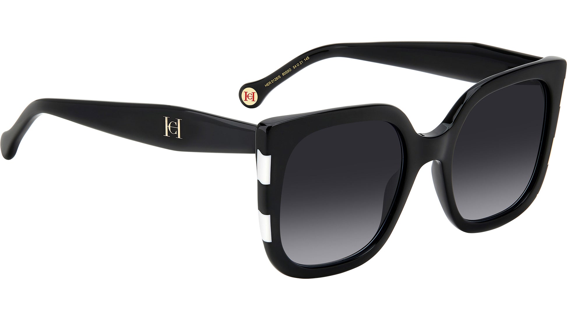 Carolina Herrera sunglasses model HER 0128/S color code 80S black white. Square full rim acetate frame for women with dark grey shaded lens. Authorised Carolina Herrera Online Reseller. Your glasses will come including the original case and accessories and will be covered by 12 month global warranty.