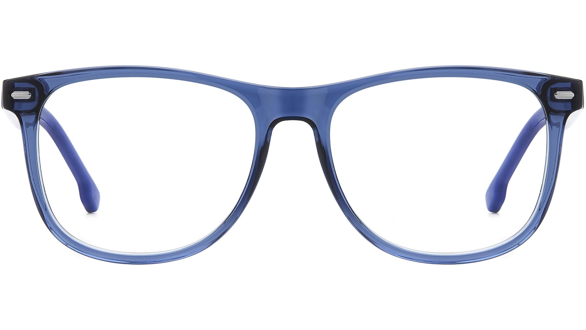 Carrera optical frame model 2049T color code PJP Blue. Youthful style defines these eyeglasses for teens. Carrera has given them a rounded square shape, reduced proportions and durable materials to guarantee a versatile and comfortable fit, day after day. Meticulous details such as the front rivet and the logo printed on the temple embellish the look. The colour combinations range from classic to vibrant, and include two-tone options.