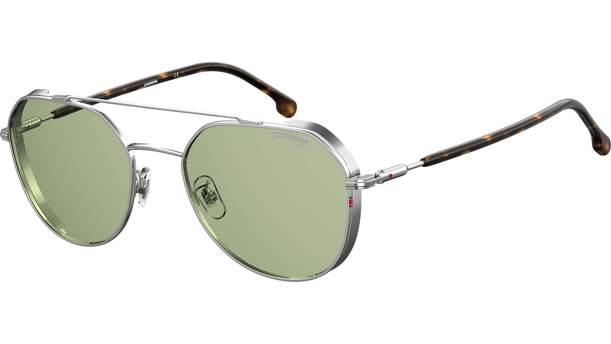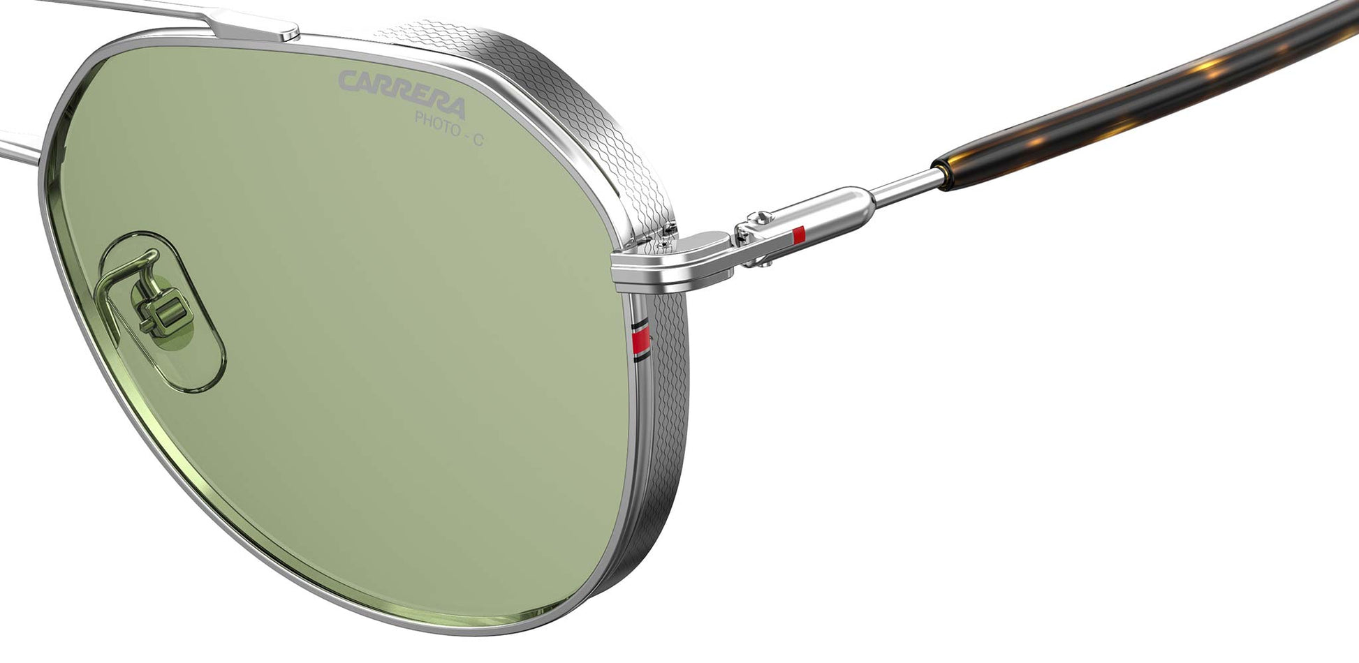 Designed for maximum performance and style, these aviator sunglasses take Carrera’s signature silhouette to new heights. The sleek stainless-steel construction stands out with a double nose bridge and texturized metal spoilers at the sides - the season’s sports-inspired design innovation. Carrera’s trademark Tank hinges provide comfort and flexibility, while a range of UV-protective lenses - including mirrored and photochromic variations - ups the cool factor.