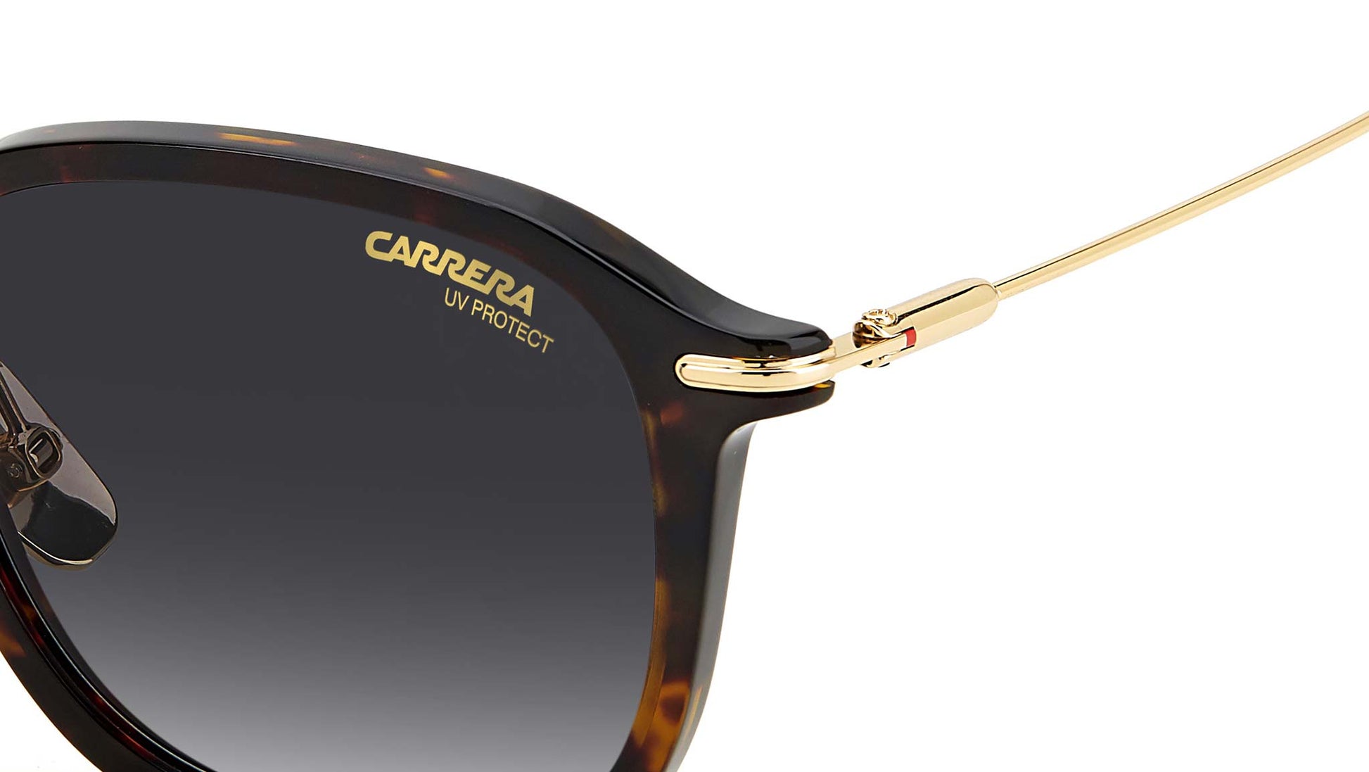 Equipped with the titanium Tank Hinges - inspired by the gasoline tank of a café racer motorbike and acclaimed for their superior performance, comfort, and durability - these men’s sunglasses are the latest new-season investment. The full-rim round frames are crafted from light acetate and reinforced with beta-titanium arms and nose bridge. Notice Carrera’s signature touch of red on the temples - the iconic hallmark of the brand.