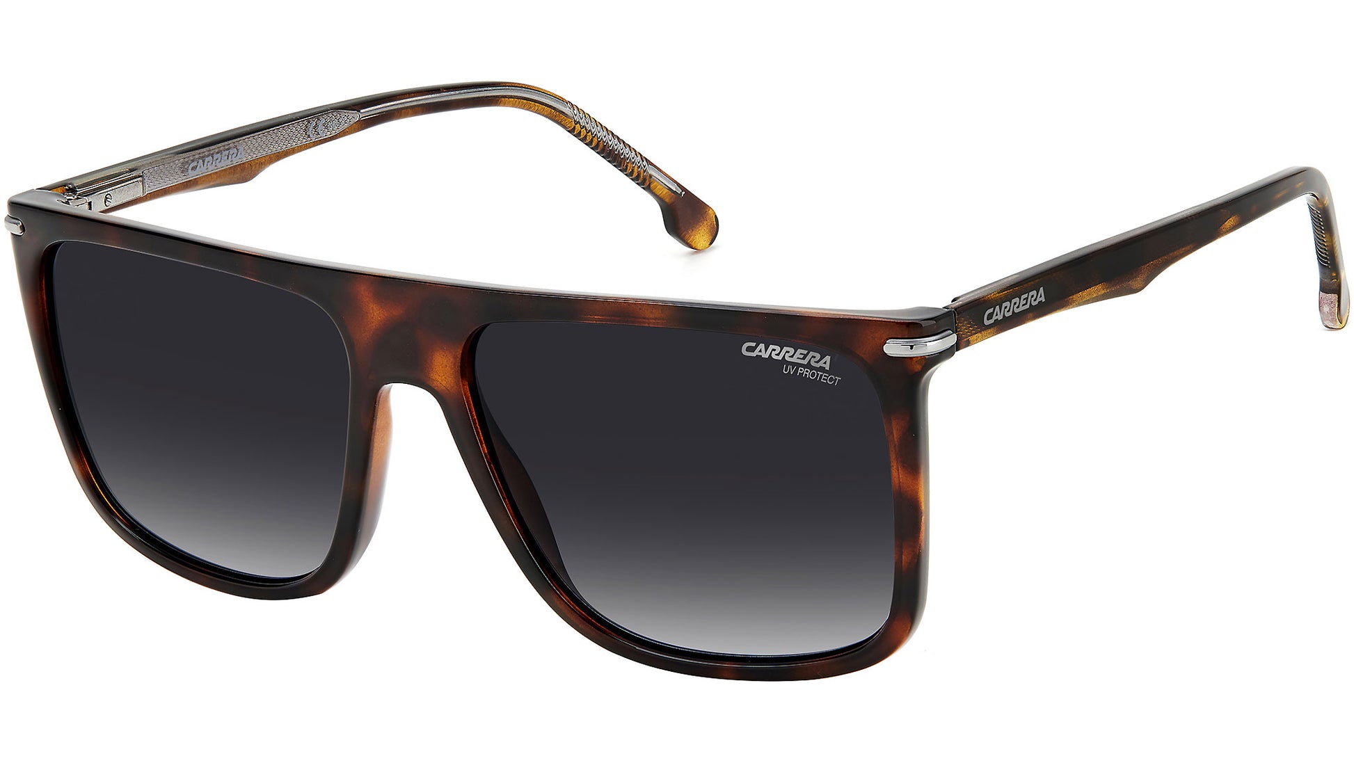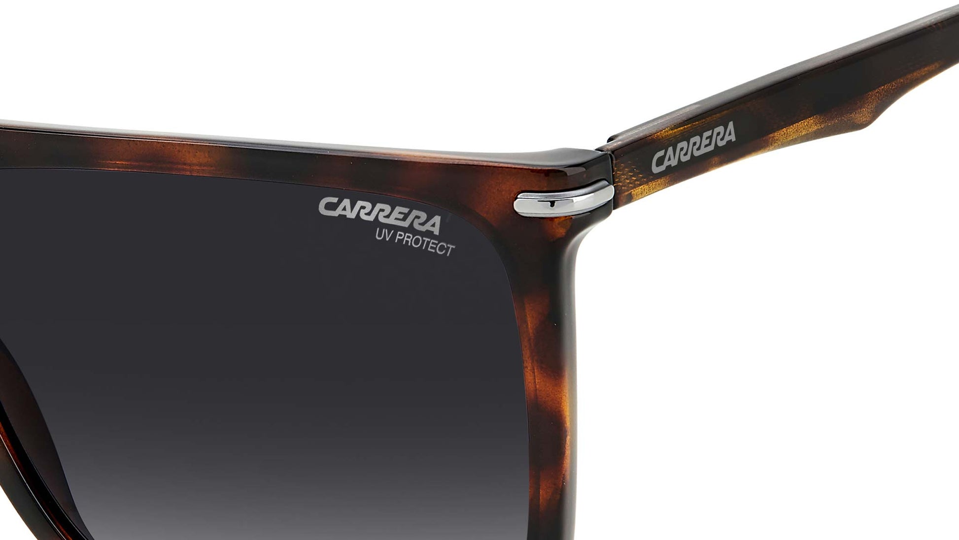 With their classic square shape, toughened up by a flat brow bar, these sunglasses are both characterful and versatile. The minimal rectangular frames are crafted from injection-molded polyamide and finished with Carrera’s signature detailing: the trademark ‘grid’ texture on the inner arms and the intricate design of the temples, inspired by the brand’s distinguished heritage. A set of interchangeable flex hinges guarantees comfort, durability, and easy maintenance.