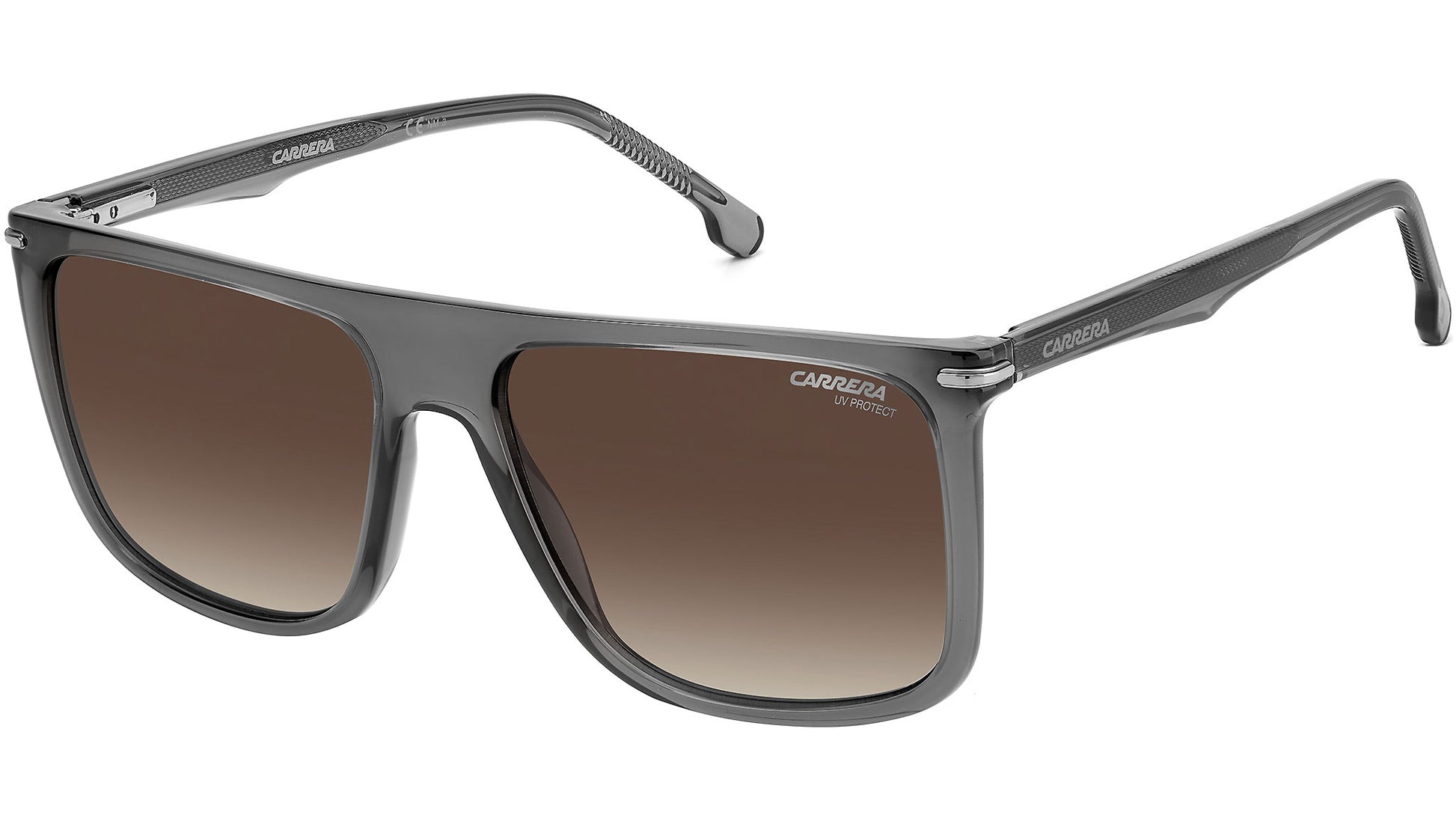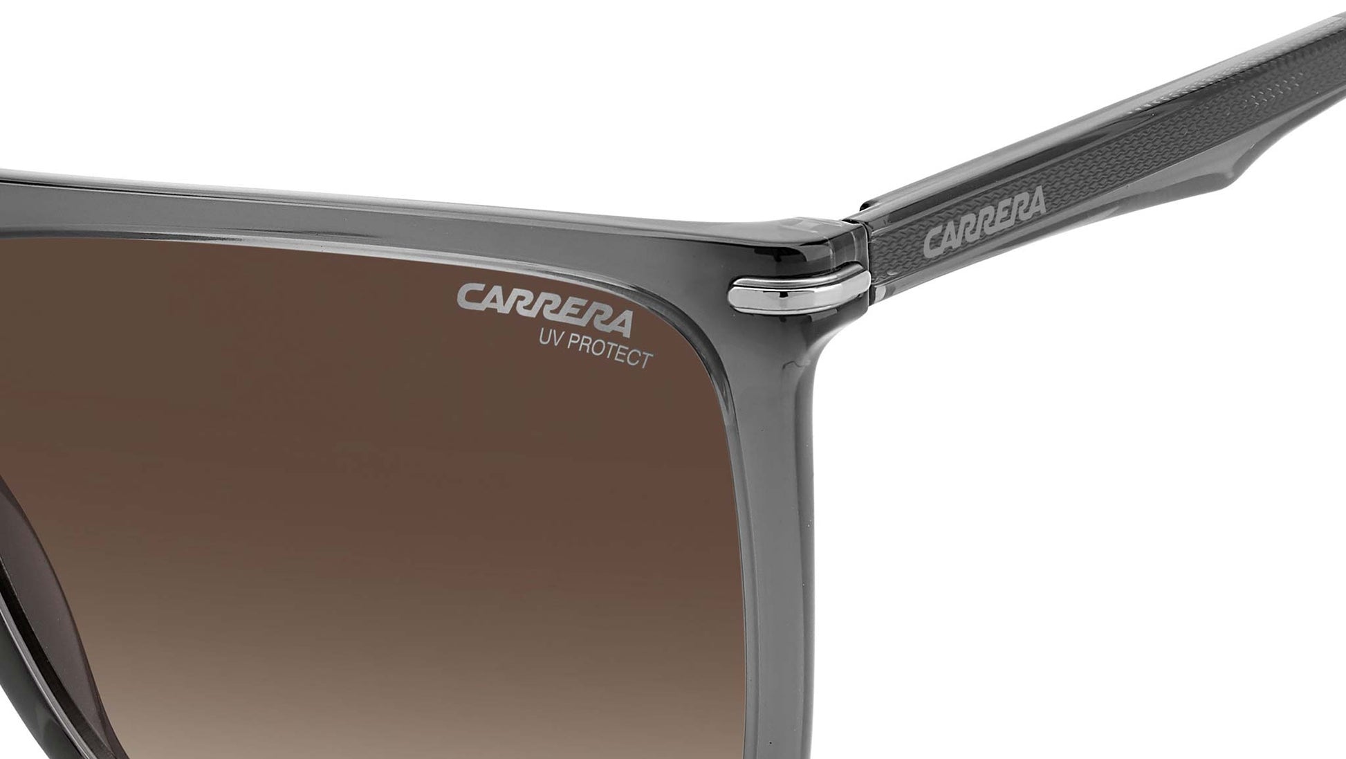 With their classic square shape, toughened up by a flat brow bar, these sunglasses are both characterful and versatile. The minimal rectangular frames are crafted from injection-molded polyamide and finished with Carrera’s signature detailing: the trademark ‘grid’ texture on the inner arms and the intricate design of the temples, inspired by the brand’s distinguished heritage. A set of interchangeable flex hinges guarantees comfort, durability, and easy maintenance.