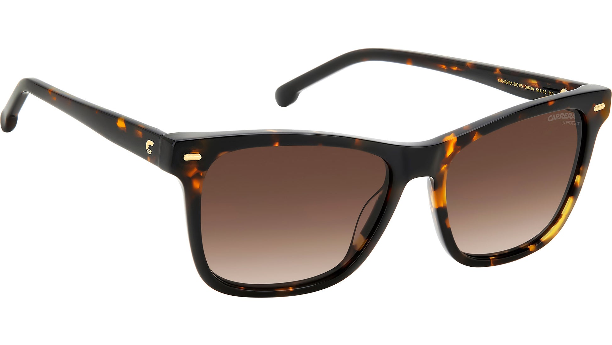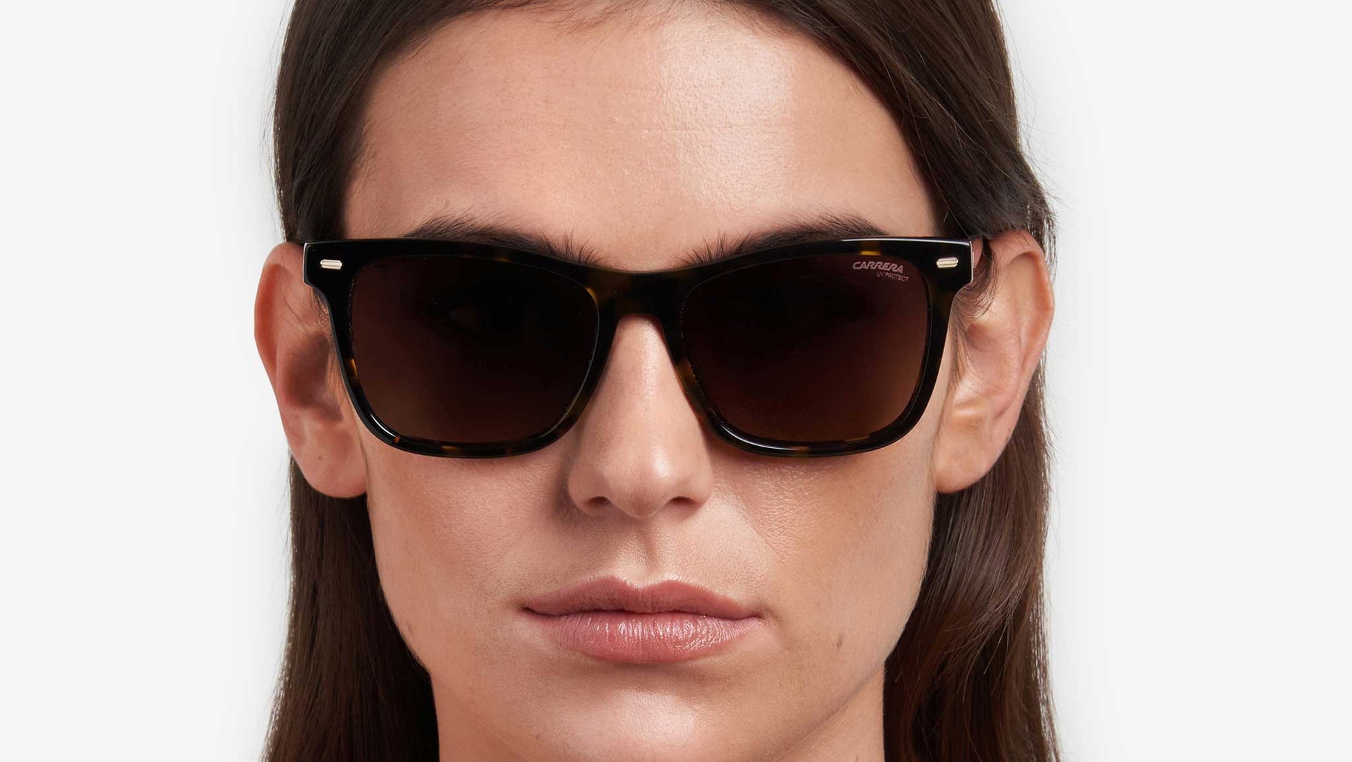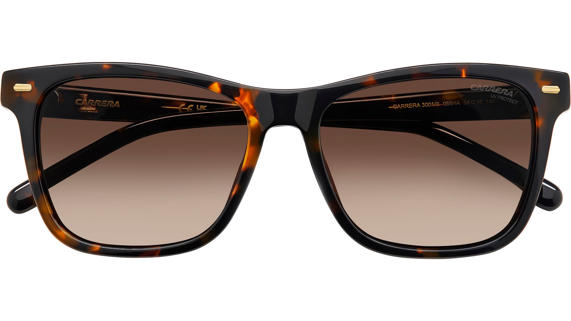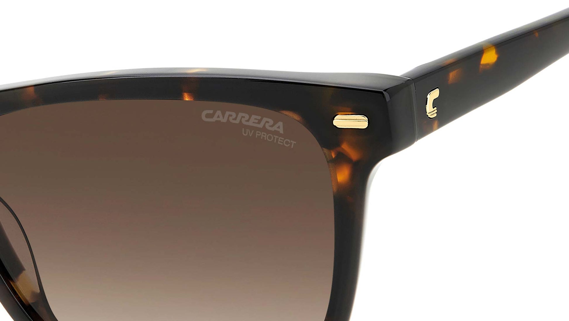 Carrera 3001/S 086 HA sunglasses for women, featuring havana rectangular acetate frame and brown shaded lenses. Make way for femininity. Quintessential elements from the world of Carrera stand out on these women’s sunglasses. The acetate structure is trimmed by an embossed Carrera ‘C’ on the temples and metal rivets on the front. The colour palette adds to their personality: these glasses come in transparent, multi-layer and colourful Havana options. The ability to fit them with prescription sun lenses makes them truly customizable. Brand line: Signature. Style code: 206152. Color code: 086 HA. Authorized Carrera online reseller. Your glasses will include the original case and accessories and are covered by a 12-month global warranty.