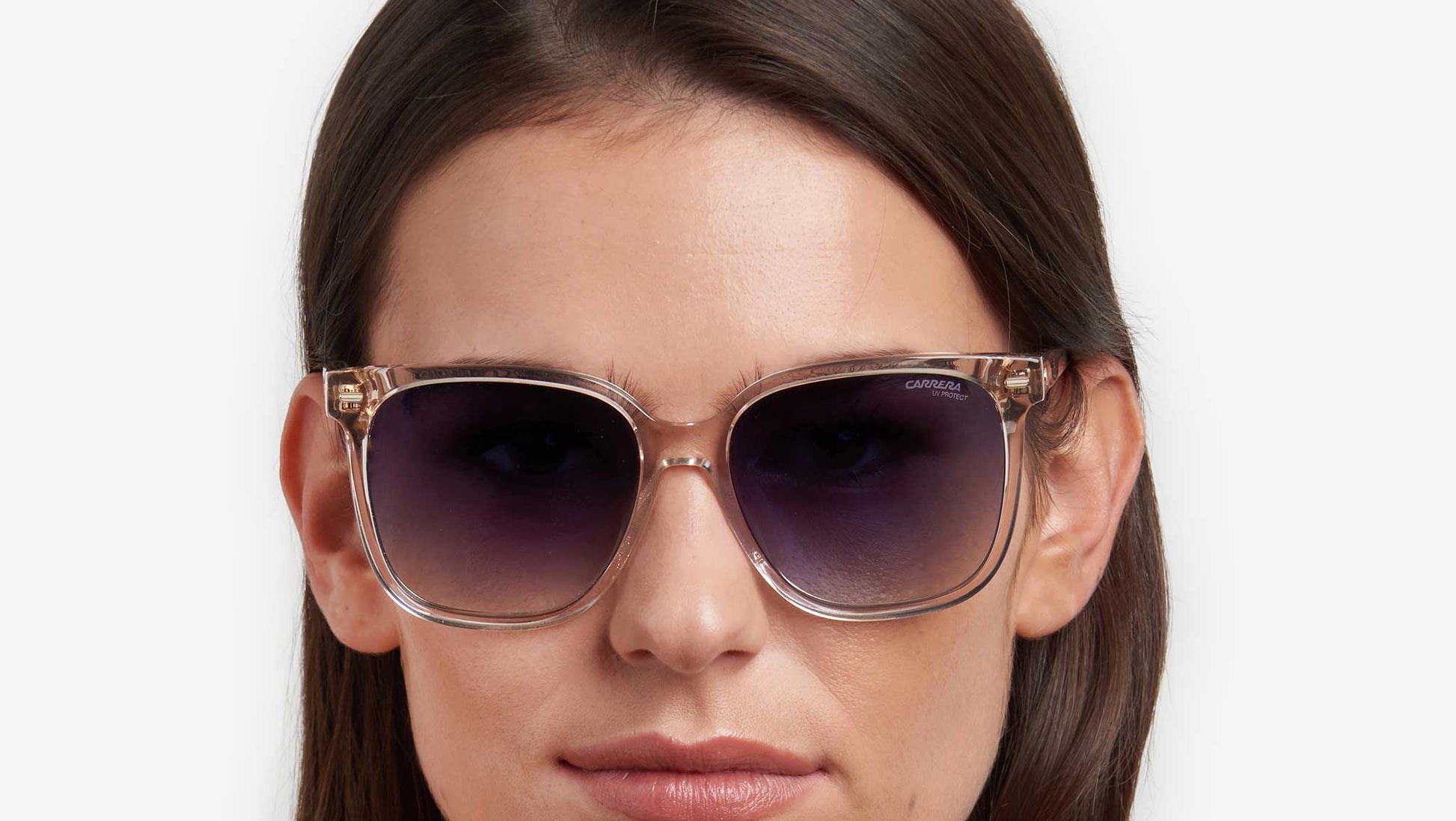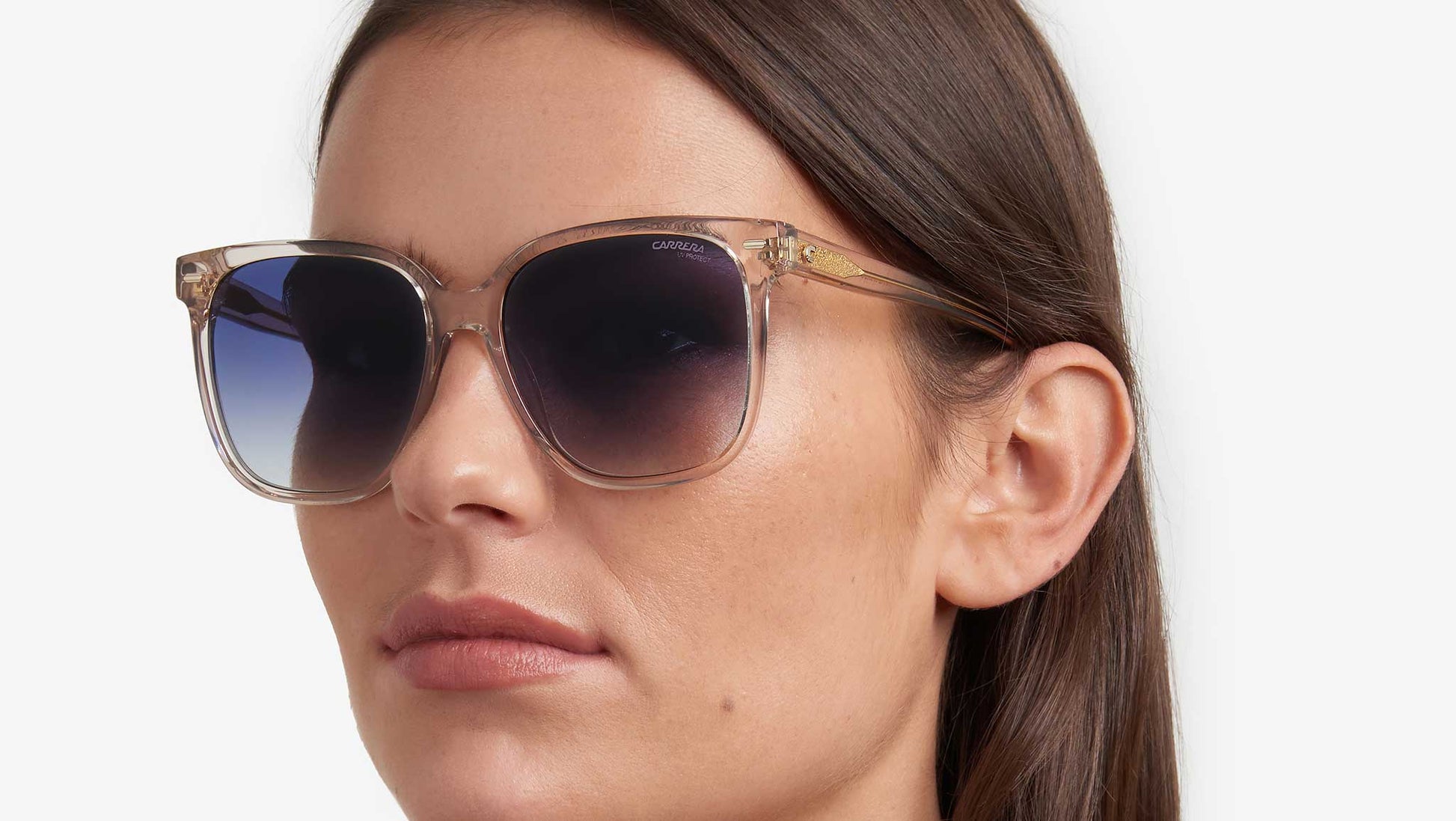 Carrera sunglasses model 3002/S color code 10A 08 Beige. These Carrera sunglasses celebrate authentic femininity. Abundant iconic details trim the acetate structure, such as an embossed ‘C’ on the temples, followed by the front rivets, a meticulous insert that conveys Carrera savoir-faire. The square frames come in classic hues and on-trend motifs such as colourful Havana, and even include multi-layer options. Simply fit them with prescription lenses to flaunt this style in absolute freedom.