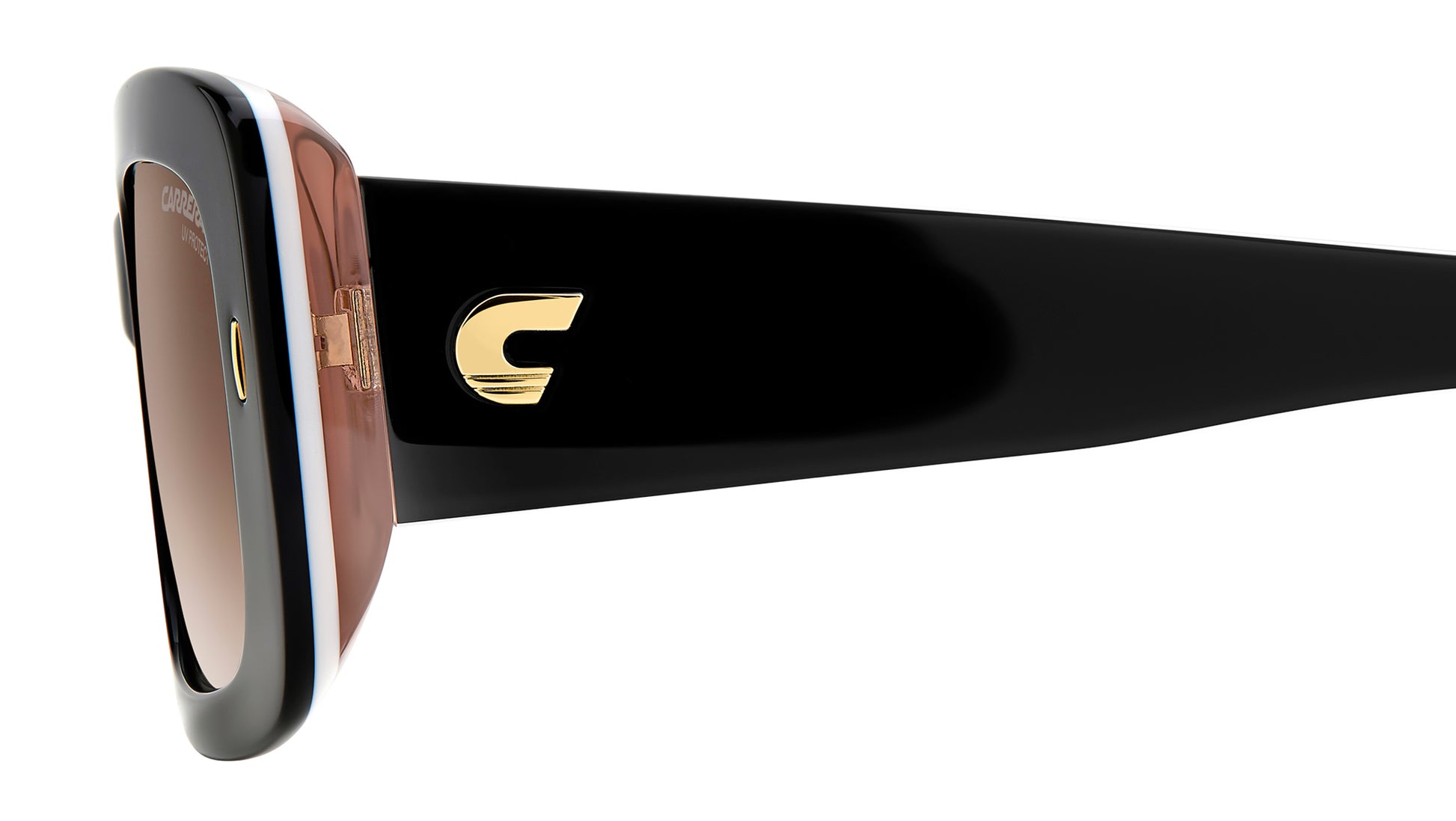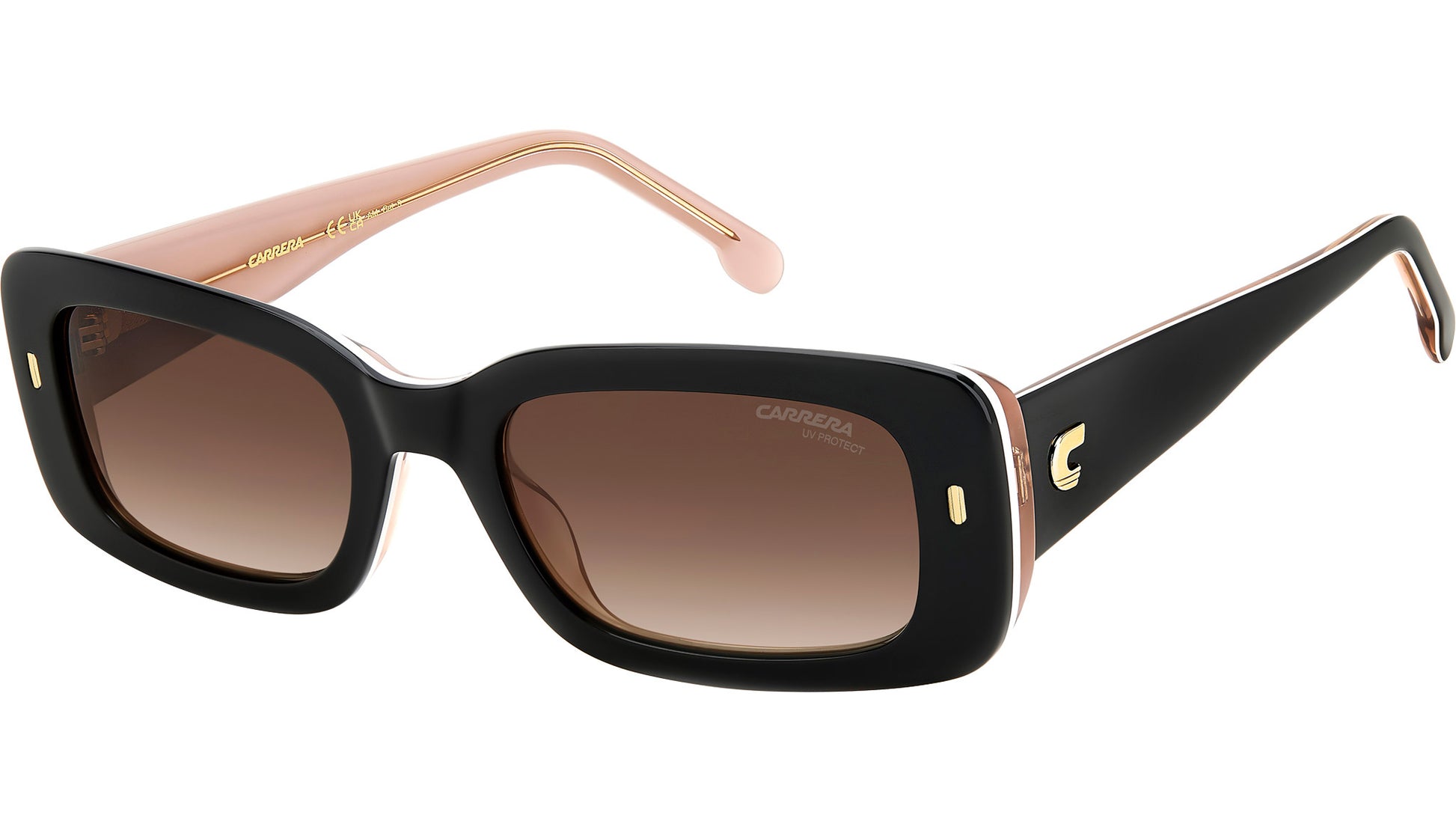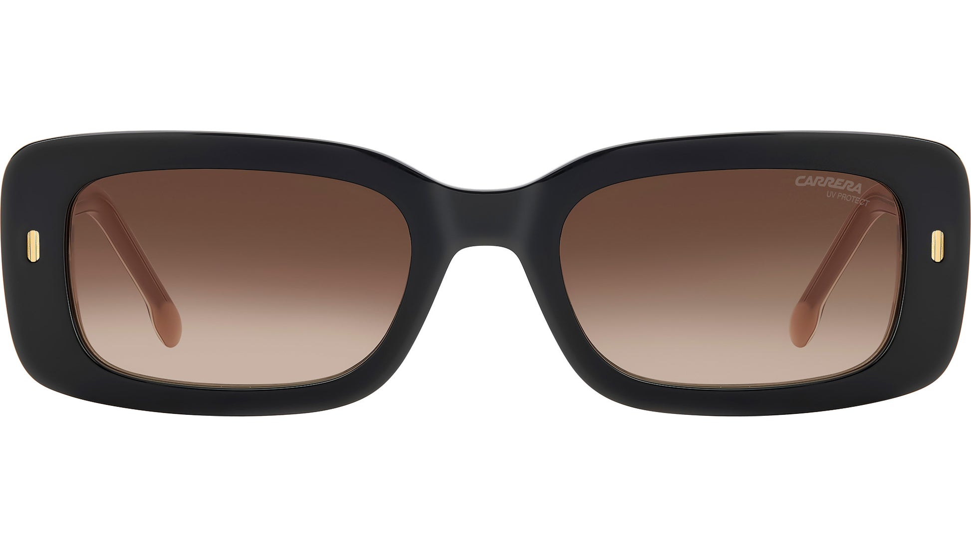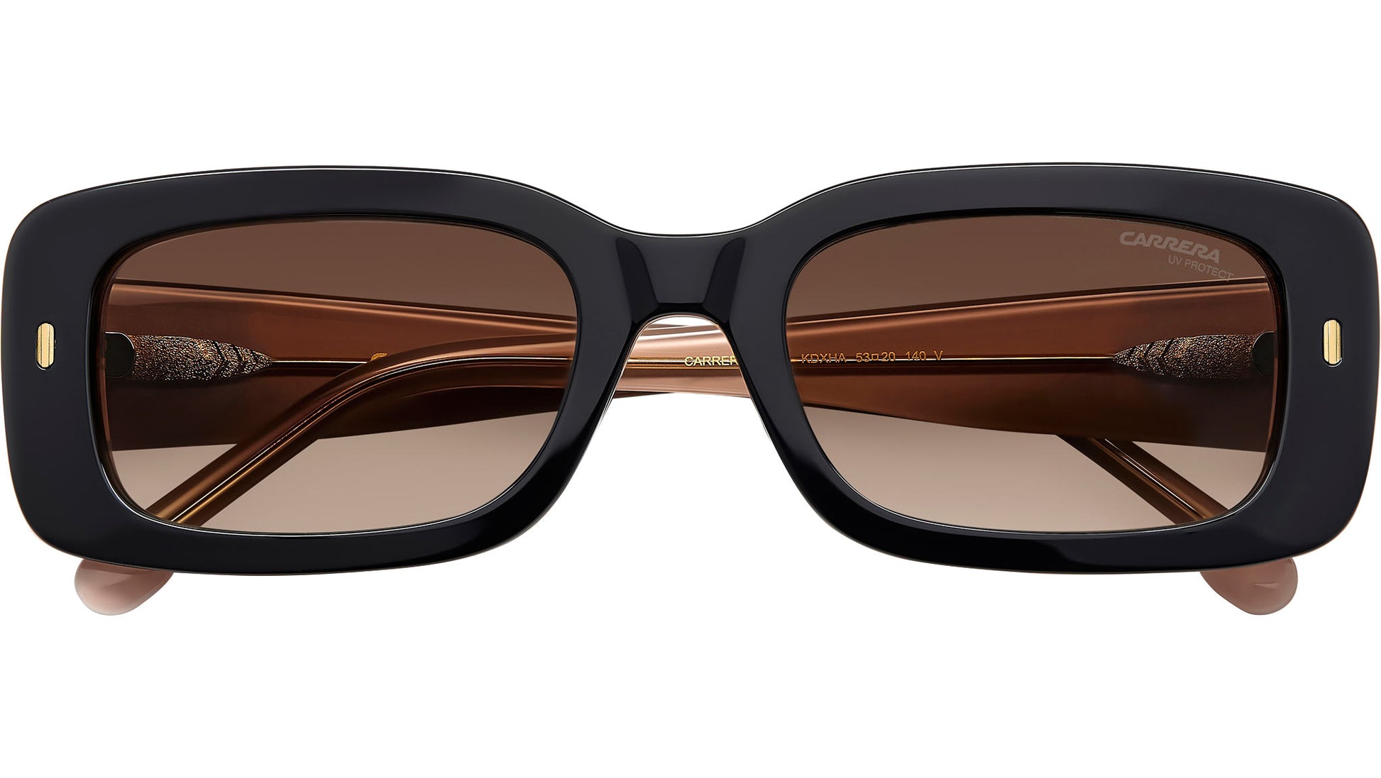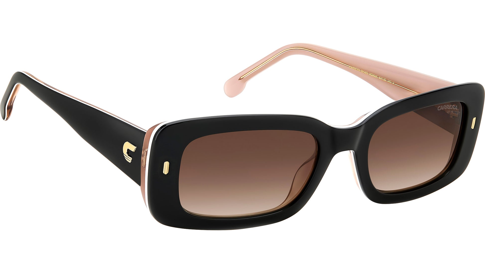 Carrera 3014/S KDX HA sunglasses for women, featuring black nude rectangular acetate frame and brown shaded lenses. The rectangular shape of these women’s sunglasses by Carrera is sure to get noticed. On that note, the acetate structure features bold outlines, lit up by the elegant rivet on the front and the embossed Carrera ‘C’ on the temples. The frames can be fitted with prescription sun lenses, and the look comes in transparent, multi-layer and colourful Havana versions. Brand line: Flag. Style code: 206324. Color code: KDX HA. Authorized Carrera online reseller. Your glasses will include the original case and accessories and are covered by a 12-month global warranty.