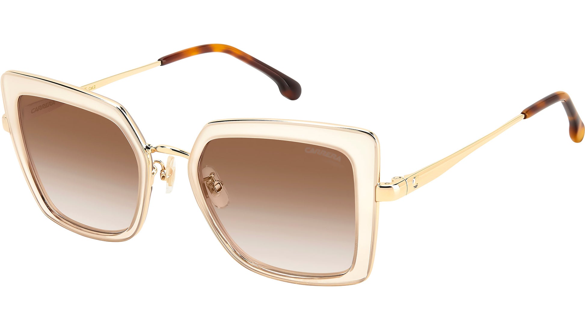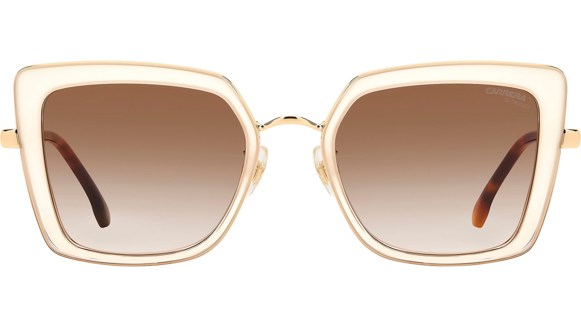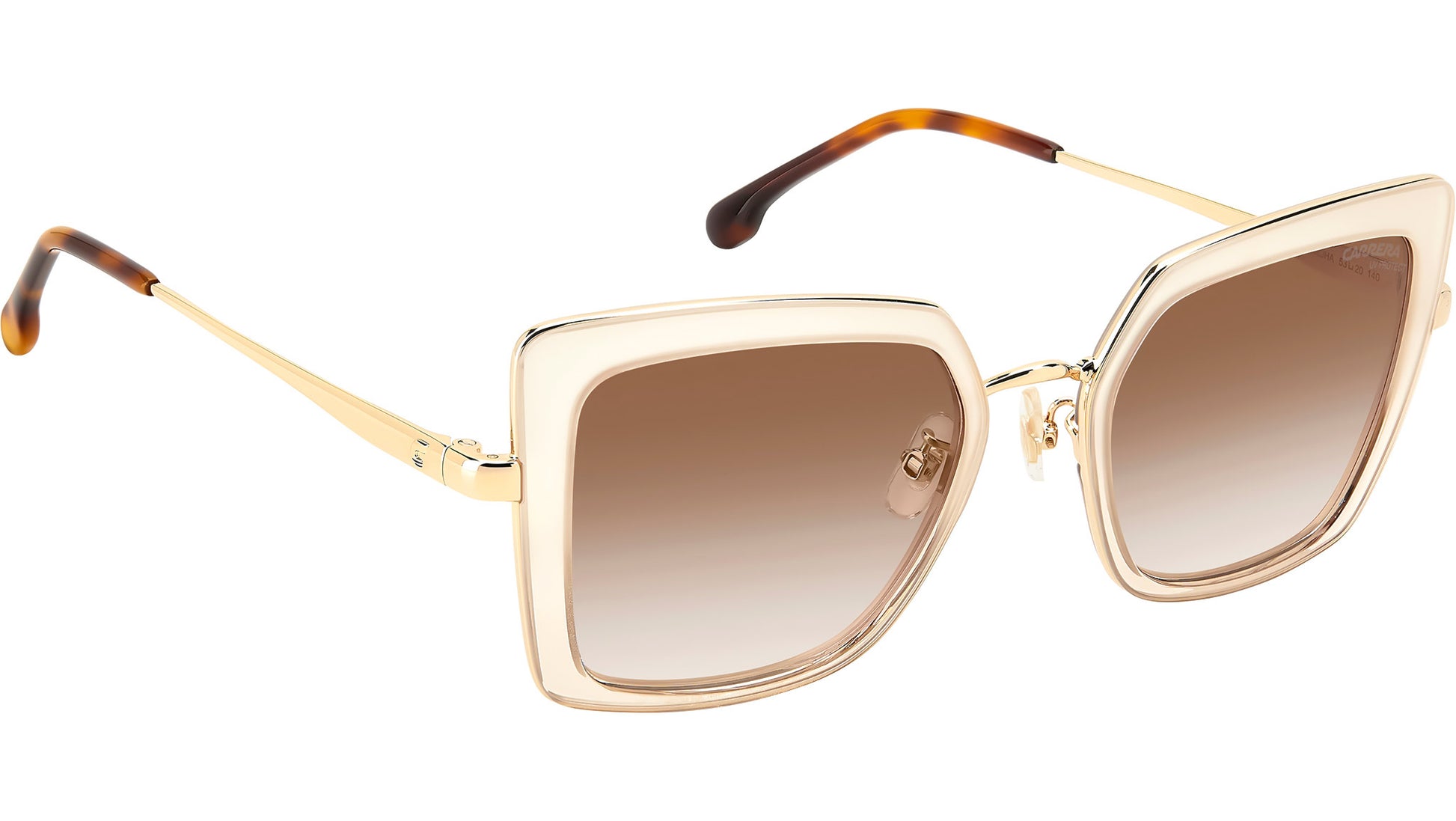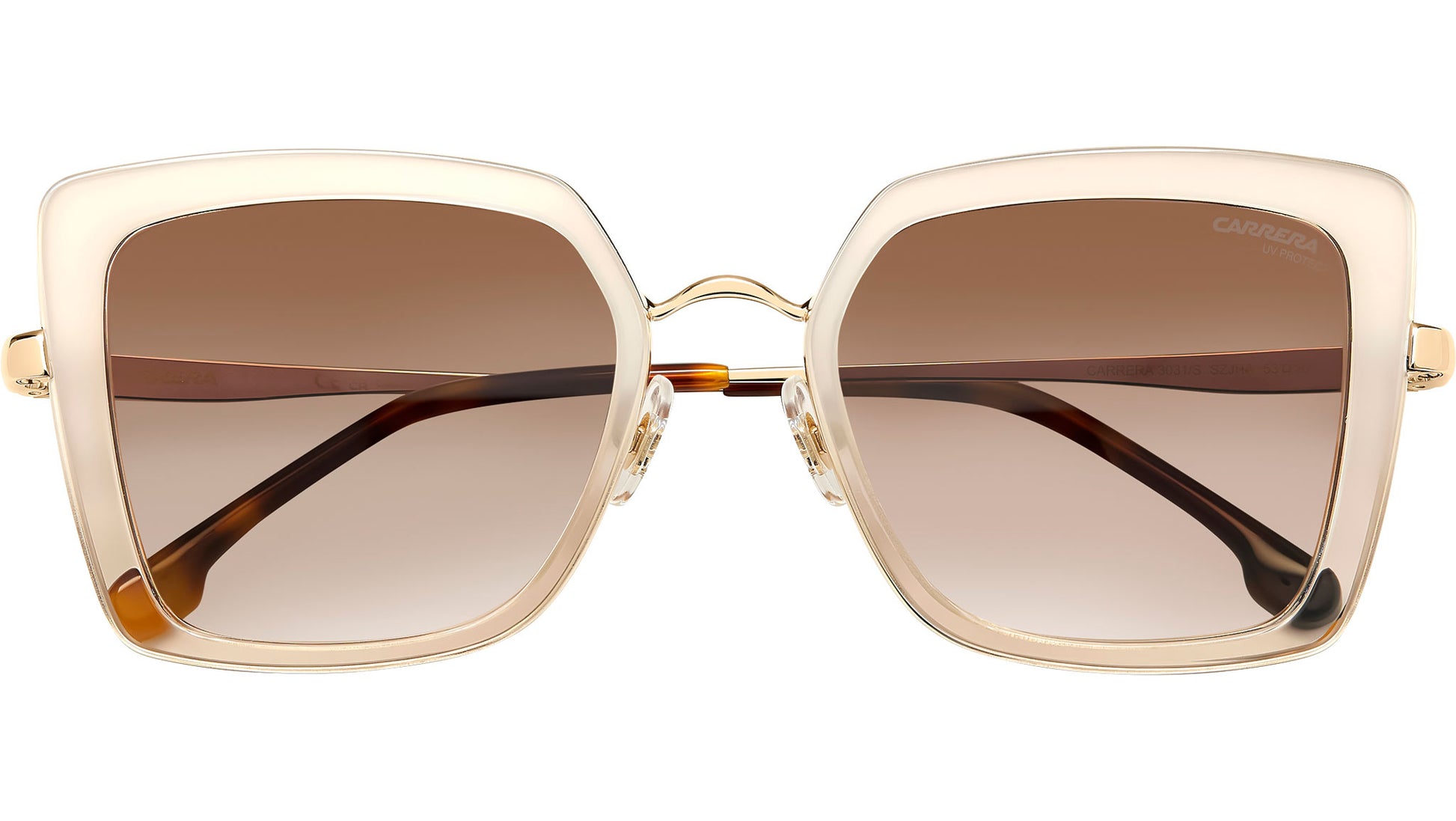 Carrera 3031/S SZJ HA sunglasses for women, featuring ivory squared metal frame and brown shaded lenses. Meticulous manufacturing makes these Carrera women’s sunglasses truly special. Their sophisticated look is created by a stainless steel frame overlapped by acetate in a juxtaposition of impeccably layered materials. The metal temples are tapered and light, trimmed by a fine laser-engraved Carrera ‘C’. The frames can be fitted with prescription sun lenses, which are also offered in a mirrored version for quintessential iconic style. Brand line: Flag. Style code: 206828. Color code: SZJ HA. Authorized Carrera online reseller. Your glasses will include the original case and accessories and are covered by a 12-month global warranty.