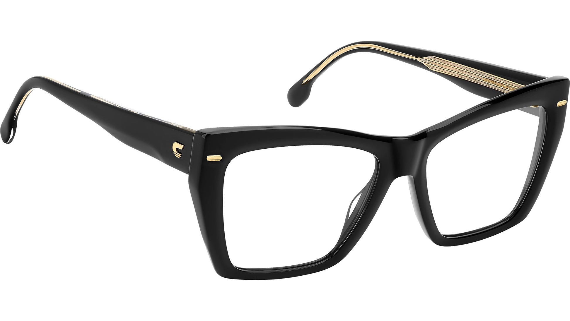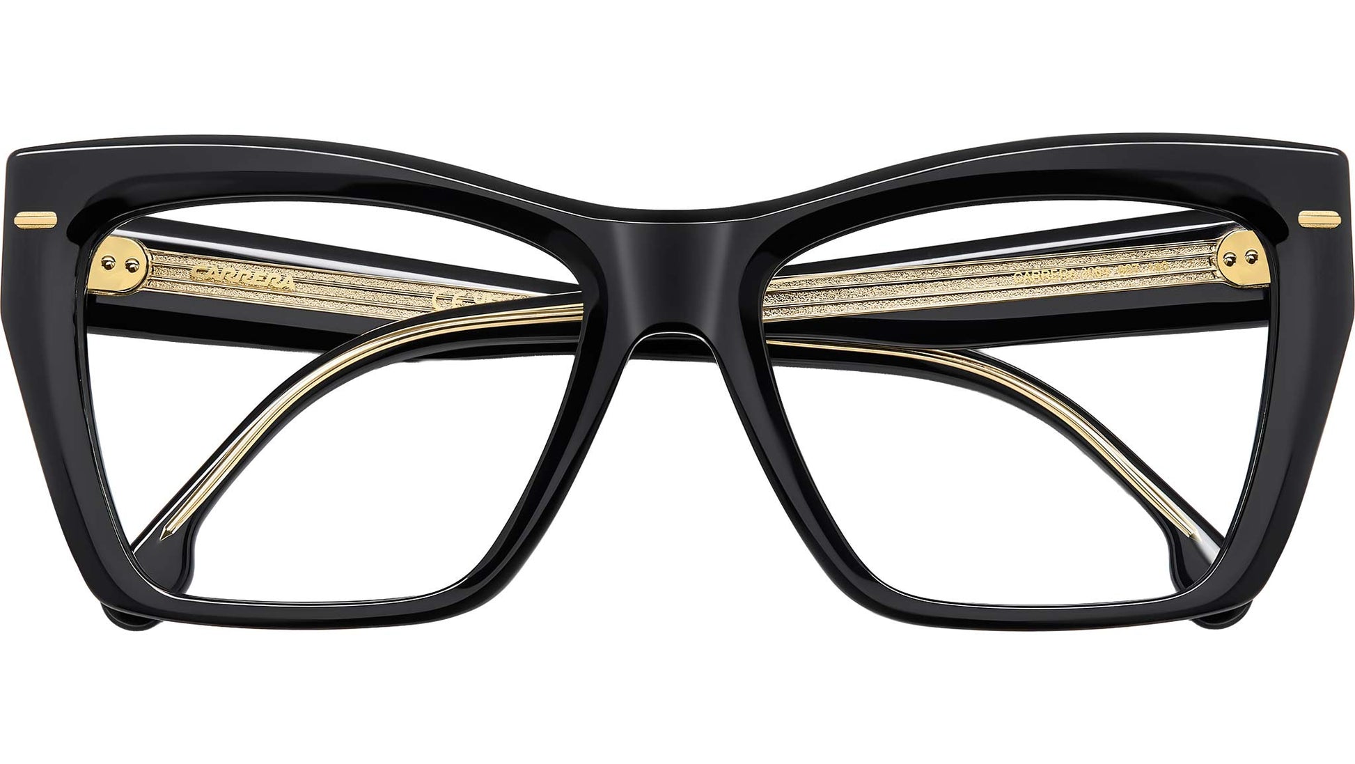 Carrera CARRERA 3064 807 glasses for women, featuring black rectangular acetate frame and demo lens lenses. Carrera plays by its own rules and these women's optical glasses are sure to get noticed. Made of acetate, the frames come in a bold geometric shape. They feature multiple references to the brand, from the chiselled flag rivets to in the ‘C’ on the temples. Of the different colourways, those with the visible metal core on the inside stand out. A lightweight design ensures they can be worn day after day. Brand line: Signature. Style code: 109431. Color code: 807. Authorized Carrera online reseller. Your glasses will include the original case and accessories and are covered by a 12-month global warranty.
